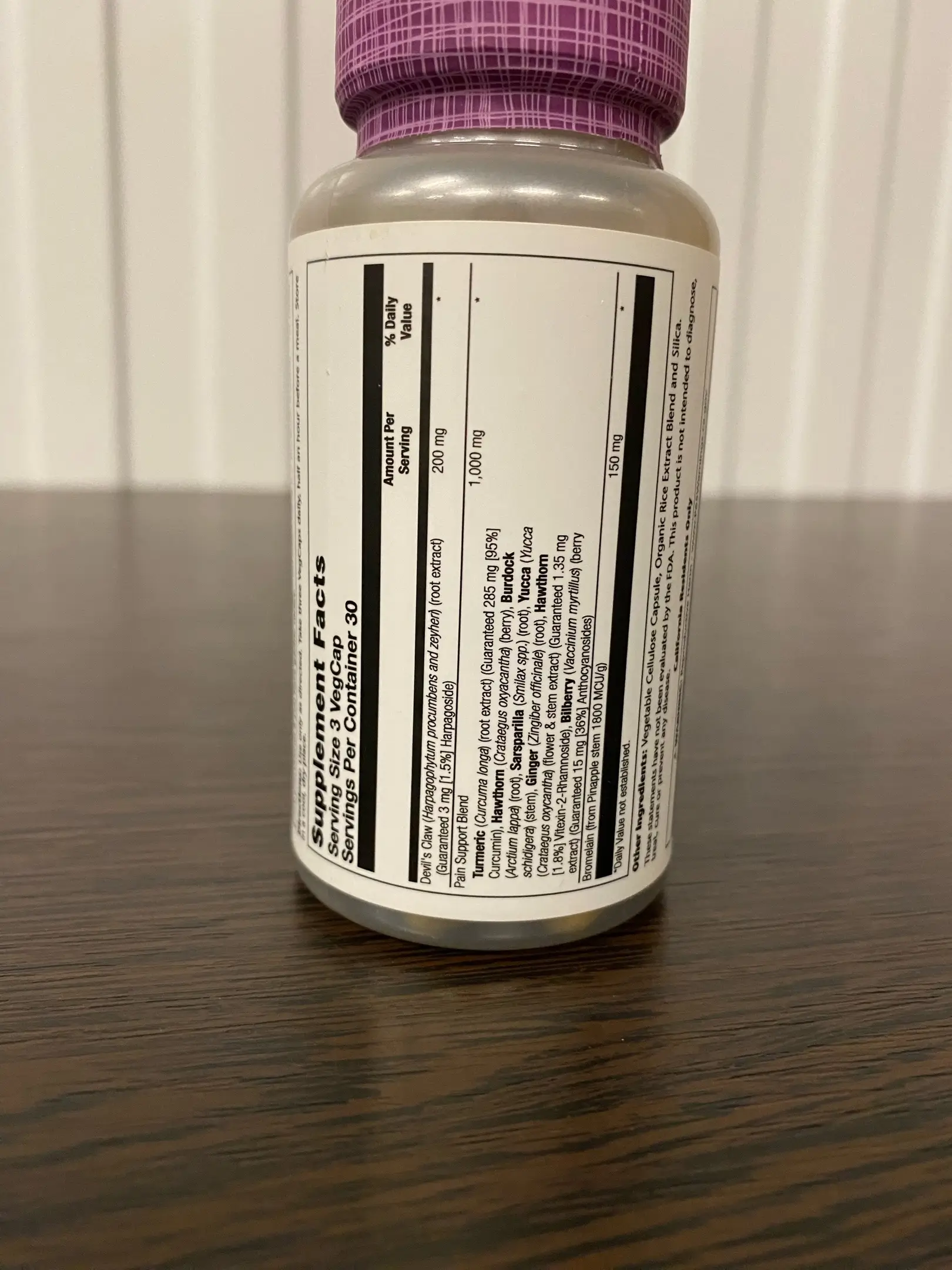 | Собственная вспомогательная смесь Куркума (Curcuma longa) (экстракт корня) (Гарантированный 285 мг [95%] куркумин), Боярышник (Crataegus oxycantha) (ягода), лопух (Articum lappa) (корень), Сарсапарилья (Смилакс spp.) (корень), Yucca (Yucca schidigera) (стебель), имбирь (Zingiber officinale) (корень), Боярышник (Crataegus oxycantha) (экстракт цветка и стебля) (Гарантированный 1,35 мг [1,8%] Vitex-2-Rhamnoside), Черника (Vaccinium myrtillus) (ягода экстракт) (Гарантированный 15 мг [36%] Антоцианозиды |