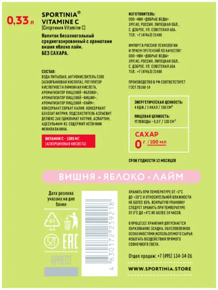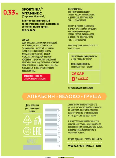 Спортивный напиток с витамином С. Общеукрепляющее и стимулирующее иммунную систему средство. Быстро восстанавливает и поддерживает водно-солевой и энергетический баланс организма во время физических нагрузок. Разработано компанией Ultra Sport Technology Ltd. (UK) совместно со специалистами Лондонского института натуропатии (CNM). Содержание витамина С - 1000 мг. Нормализует проницаемость капилляров, оказывает противовоспалительное действие. Защищает организм от токсинов. В состав напитка включены соки апельсина, яблока, груша.