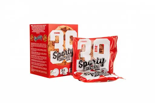 Sporty Fitness – вкусное фитнес-печенье без сахара, с кусочками фруктов и 30,5% клетчатки. Идеальный перекус на любое время суток для тех, кто заботится о своём здоровье и внешнем виде.