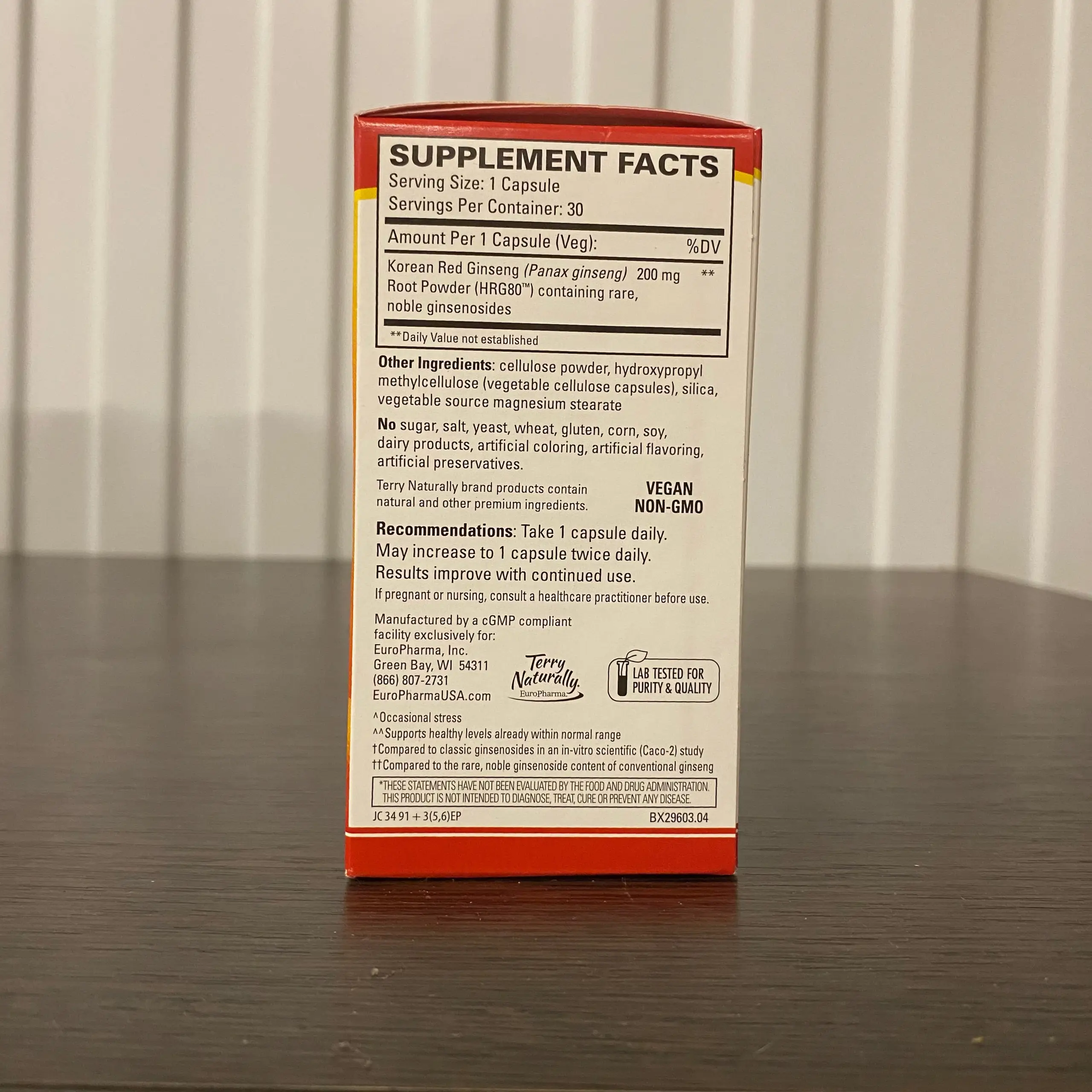 TERRY NATURELLY HRG80™ Red Ginseng Energy - Feel Your Best • 7X Stronger • Ultra-Clean 30 Softgels (подходящий срок, 09/24)
