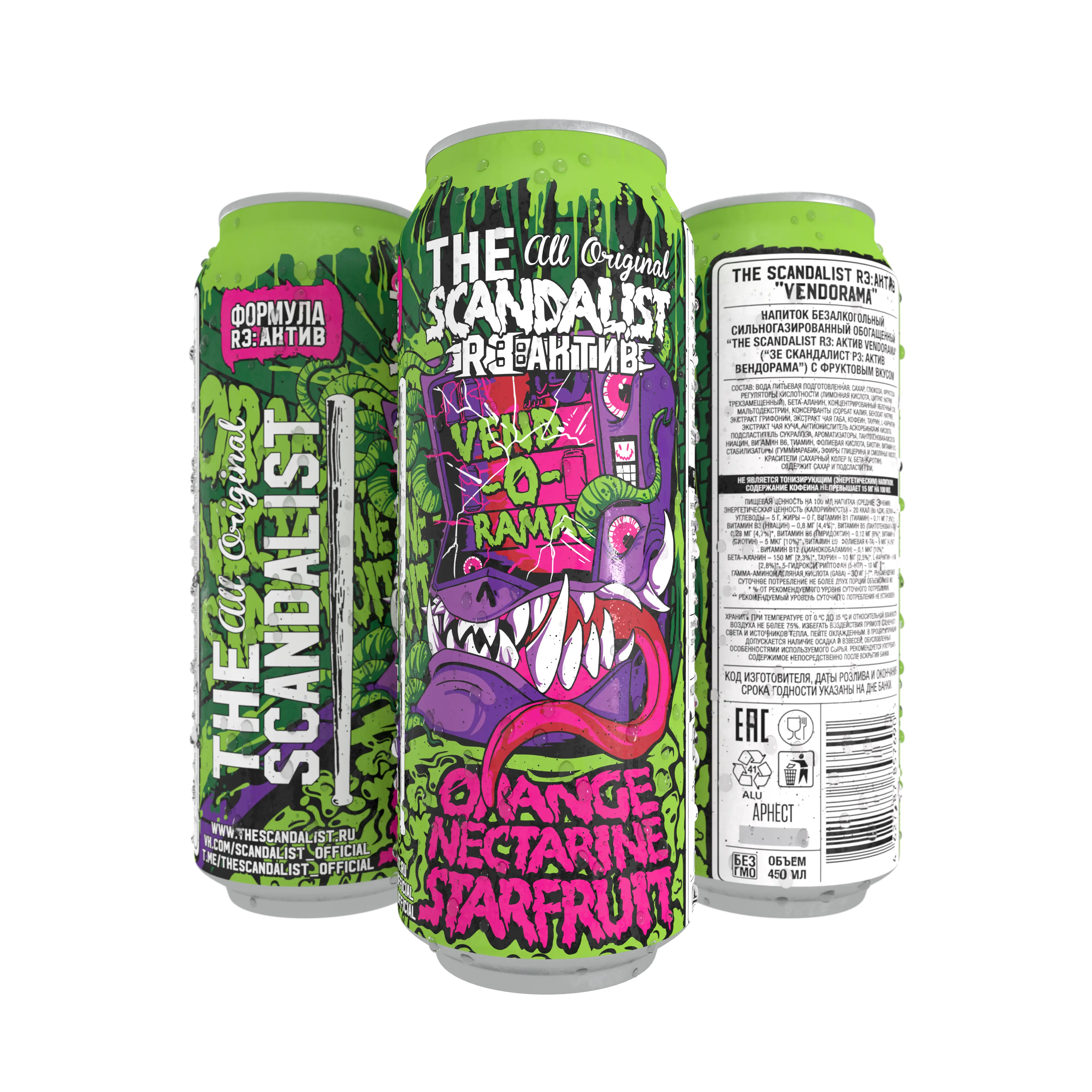 THE SCANDALIST R3: АКТИВ VENDORAMA (“ЗЕ СКАНДАЛИСТ Р3: АКТИВ ВЕНДОРАМА”) НАПИТОК Б/А СИЛЬНОГАЗИРОВАННЫЙ ОБОГАЩЕННЫЙ С ФРУКТОВЫМ ВКУСОМ