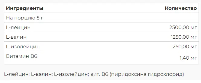 АМИНОКИСЛОТЫ С РАЗВЕТВЛЕННОЙ ЦЕПЬЮ (BCAA) + ВИТАМИН В6.