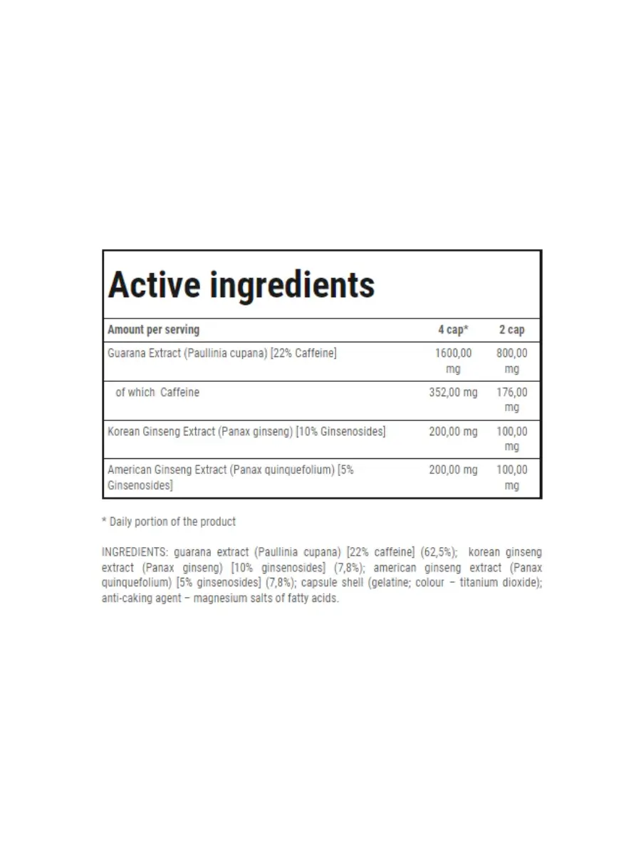 - Натуральный заряд энергии: Благодаря экстрактам женьшеня и гуараны, этот продукт обеспечивает длительный и стабильный источник энергии, предотвращая усталость и повышая выносливость.