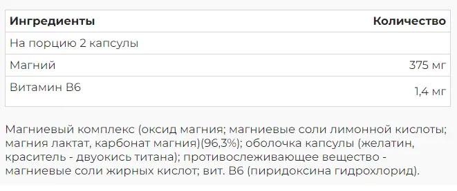 Витамин B6 для усвоения магния: Витамин B6 играет важную роль в усвоении магния в организме, поэтому его добавление в комплекс Magne 100 Sport повышает эффективность усвоения магния и его положительное воздействие на организм.