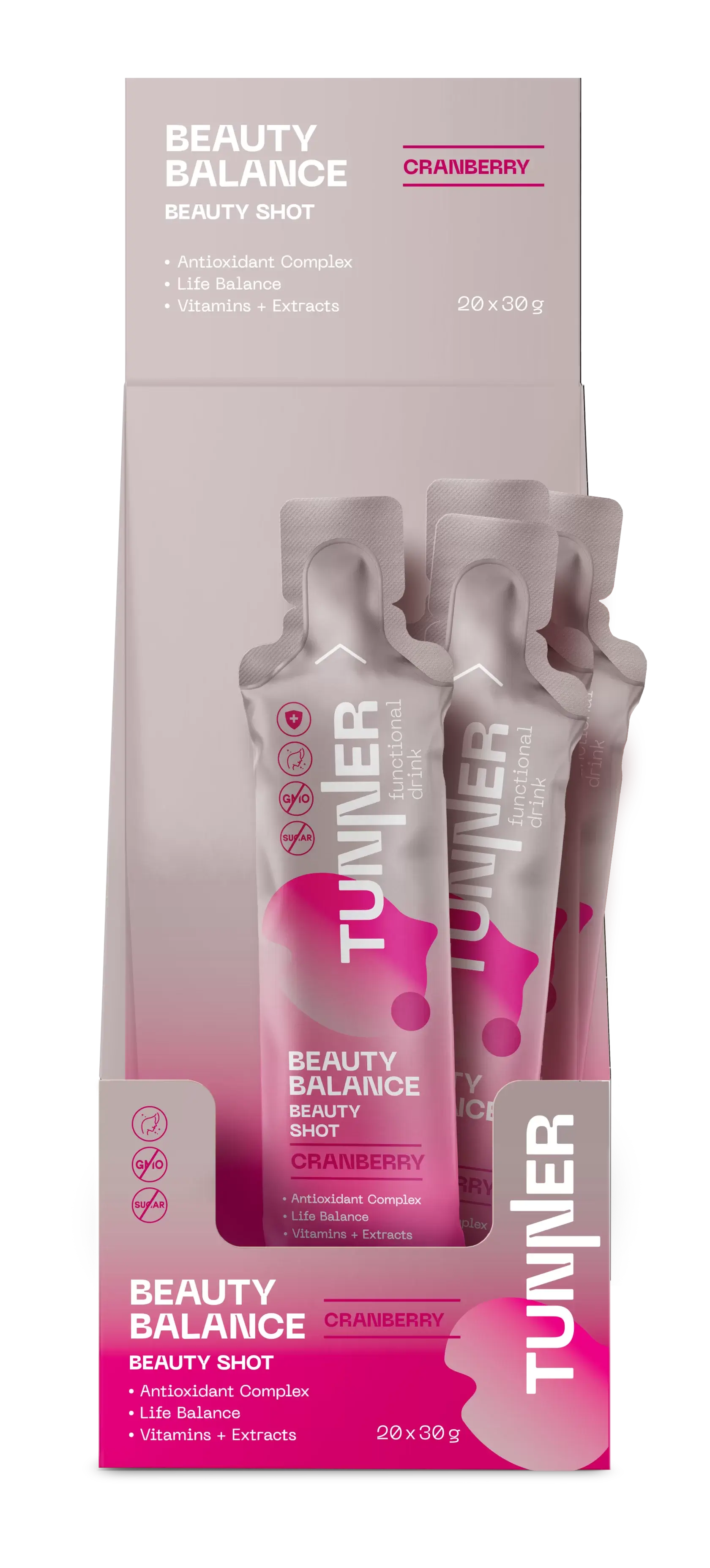 ФУНКЦИОНАЛЬНЫЙ НАПИТОК "BEAUTY SHOT" СО ВКУСОМ КЛЮКВЫ, ТМ "TUNNER" Оказывает антиоксидантное, тонизирующее и восстанавливающее действие. Благотворно влияет на организм при общем состоянии усталости, режимах снижения веса, инфекционных и вирусных заболеваниях. В частности рекомендуется косметологами для восстановления .
