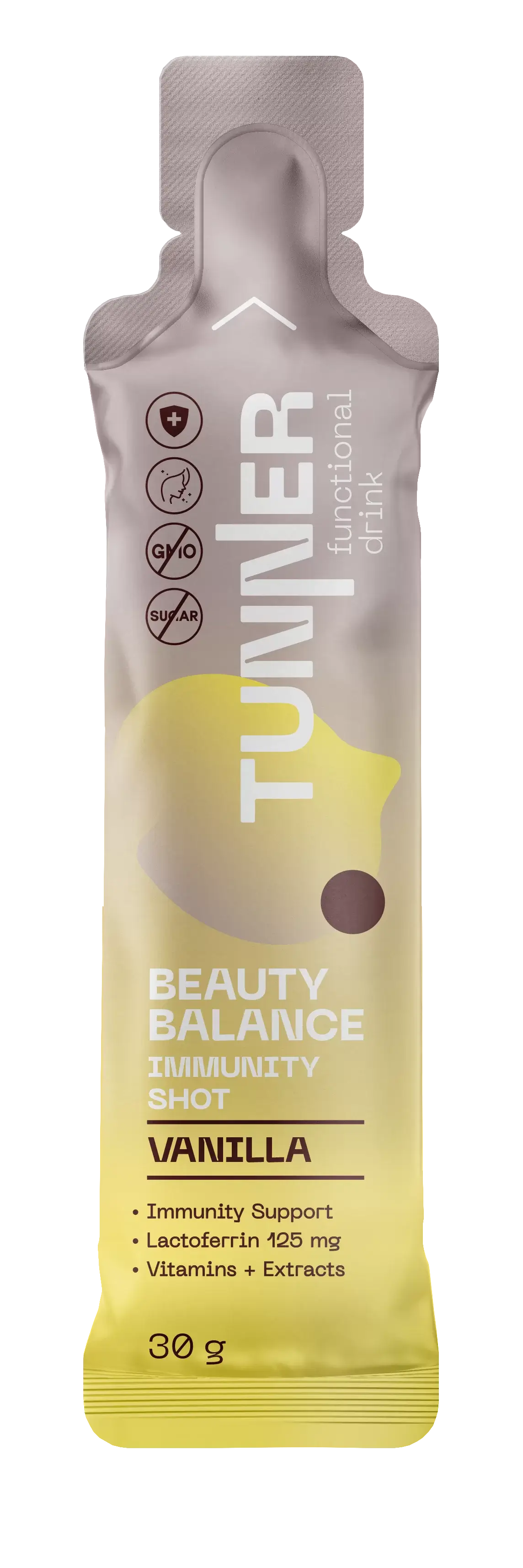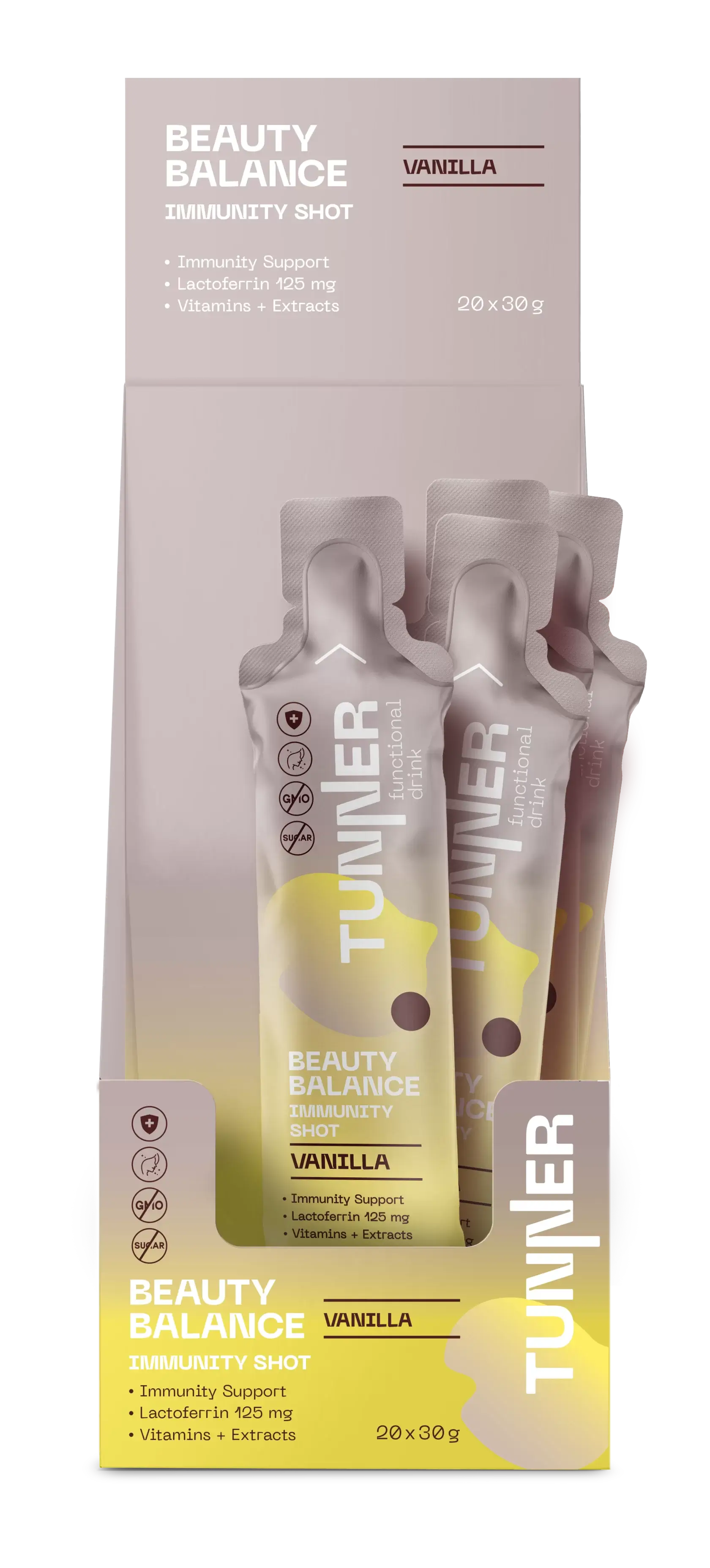 ФУНКЦИОНАЛЬНЫЙ НАПИТОК "IMMUNITY SHOT" СО ВКУСОМ ВАНИЛИ, ТМ "TUNNER" Укрепляет иммунную систему у взрослых и формирует сильный иммунитет у детей, имеет ярко выраженное антимикробное и противовирусное действие, благоприятно влияет на здоровье кожи, полости рта, кишечника.