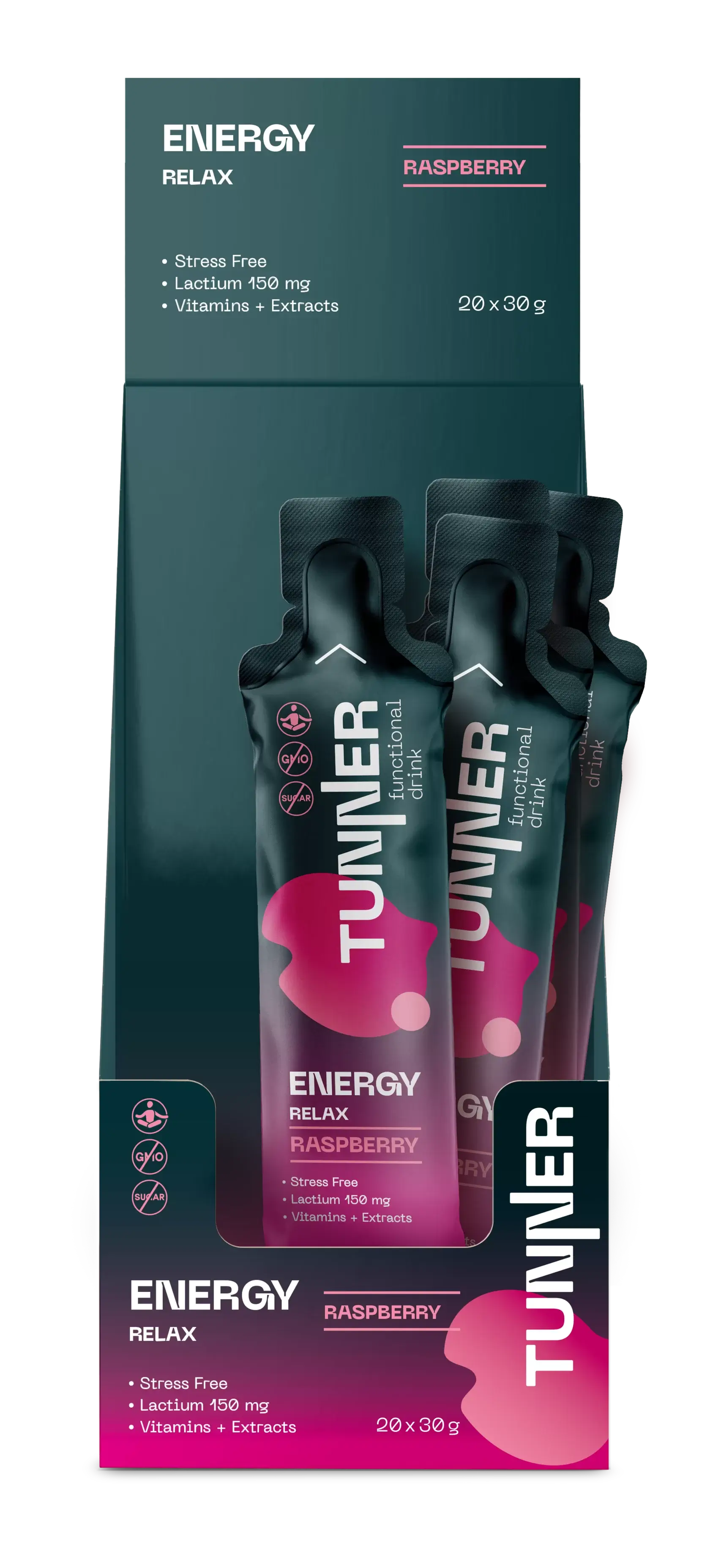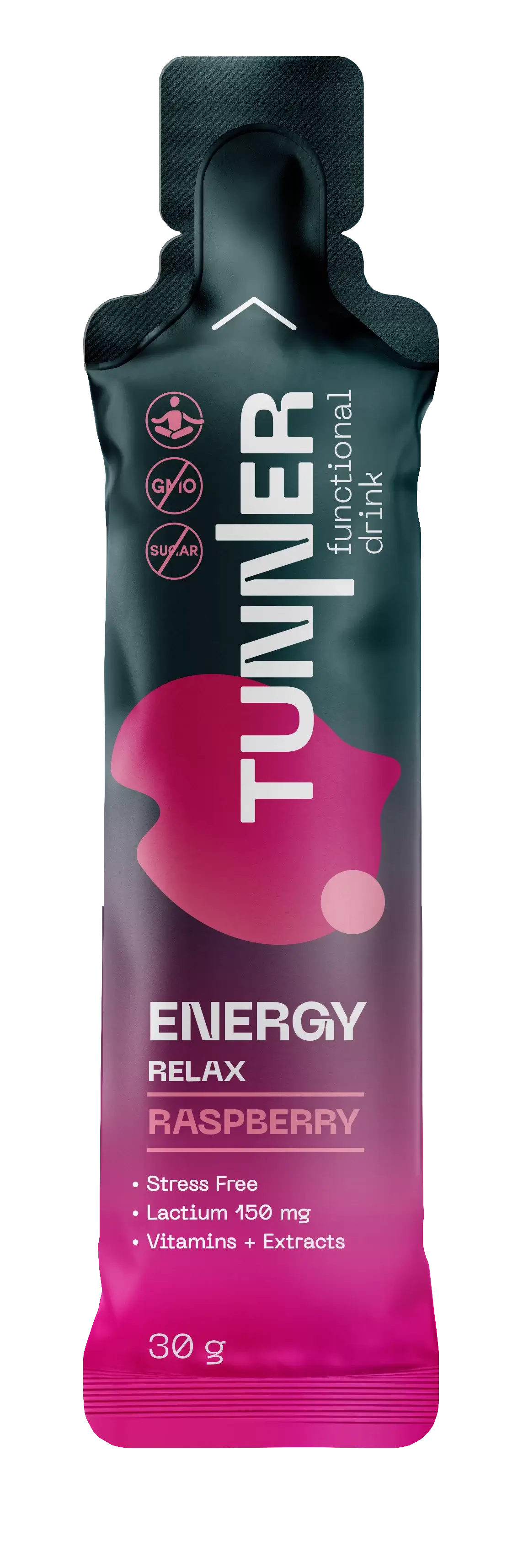 ФУНКЦИОНАЛЬНЫЙ НАПИТОК "RELAX" СО ВКУСОМ МАЛИНЫ, ТМ "TUNNER" Благотворно влияет на защиту нервной системы, способствует снятию тревоги, расслаблению и улучшению качества сна.