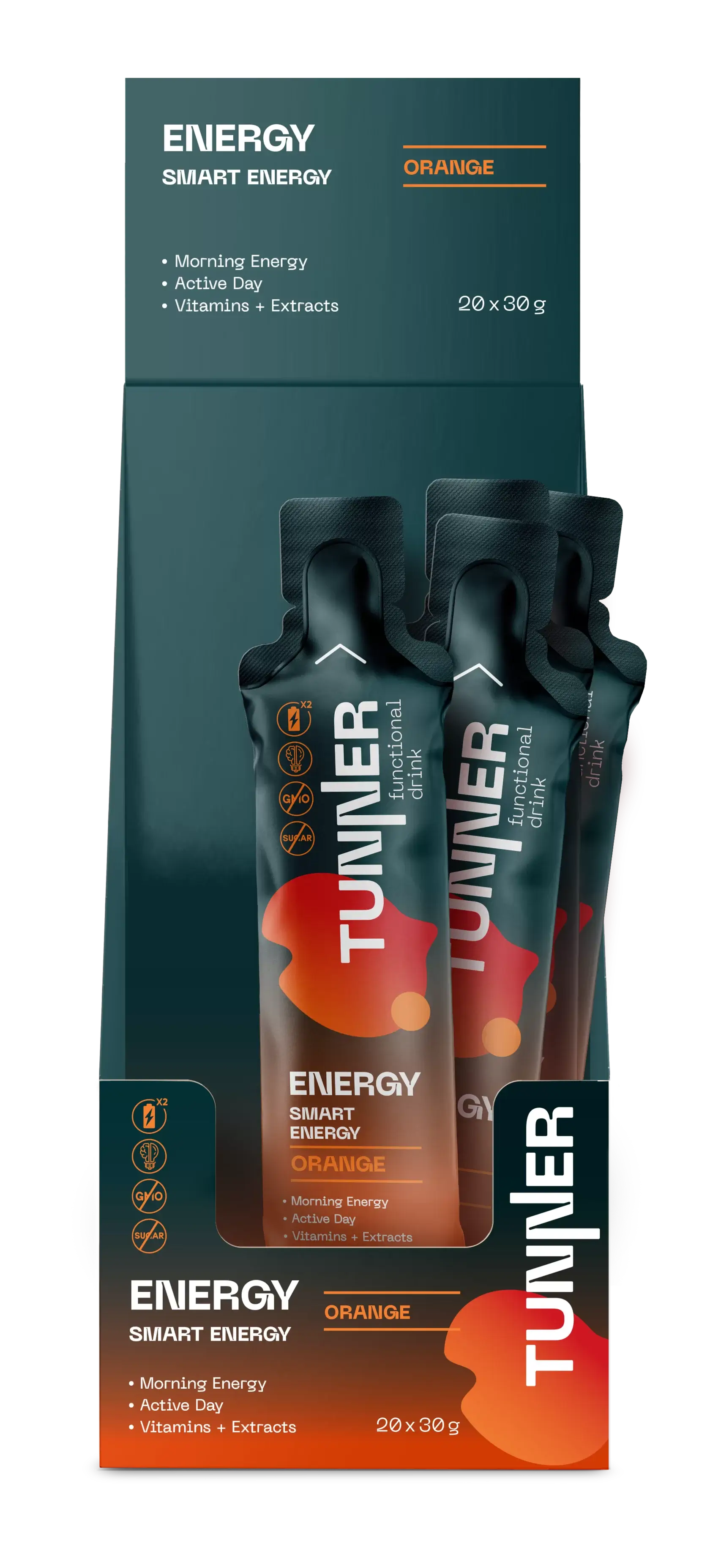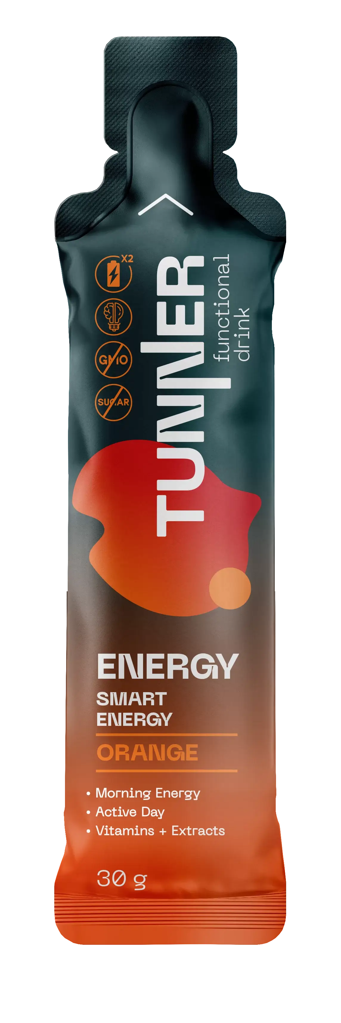 ФУНКЦИОНАЛЬНЫЙ НАПИТОК "SMART ENERGY" СО ВКУСОМ АПЕЛЬСИНА, ТМ "TUNNER" Обладает тонизирующими свойствами, способствует повышению концентрации внимания, работоспособности, стимулирует мозговую активность, благотворно влияет на способность концентрироваться.
