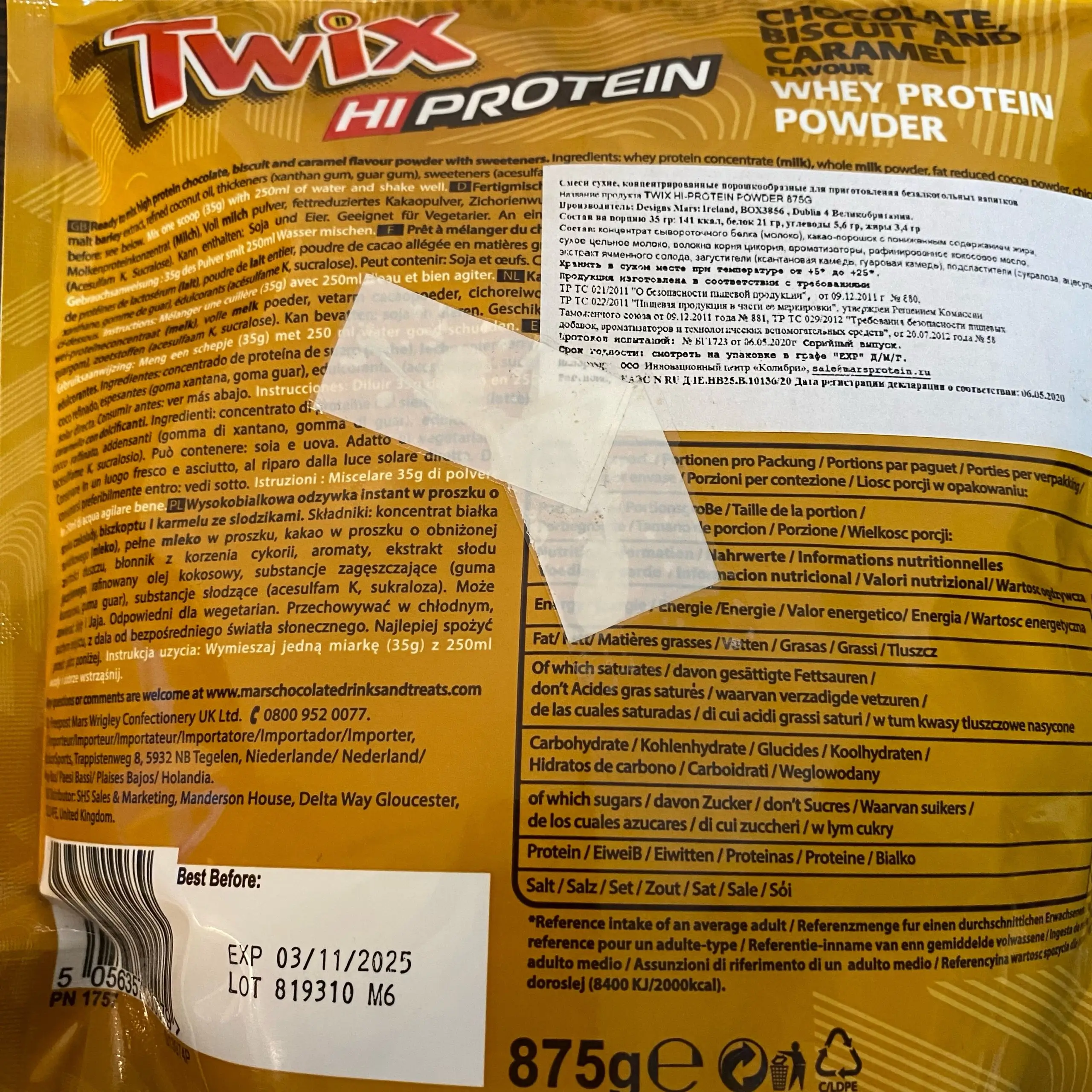 TWIX Hi Protein Powder 875g (заклеена дырка, 11/25)