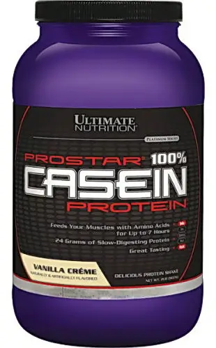Ultimate Nutrition Prostar Casein - это добавка, содержащая антикатаболический мицеллярный казеин и гидролизат казеина медленно усваивающийся в организме. Если организму полезно быстрое усвоение протеина до и после тренировок, то во все остальное время эффективнее будет медленное усваивание. Казеин главный белок коровьего молока. Благодаря своей структуре он чрезвычайно чувствителен к уровню рН и кислотной среде желудка, и, соответственно, расщепляется довольно медленно.