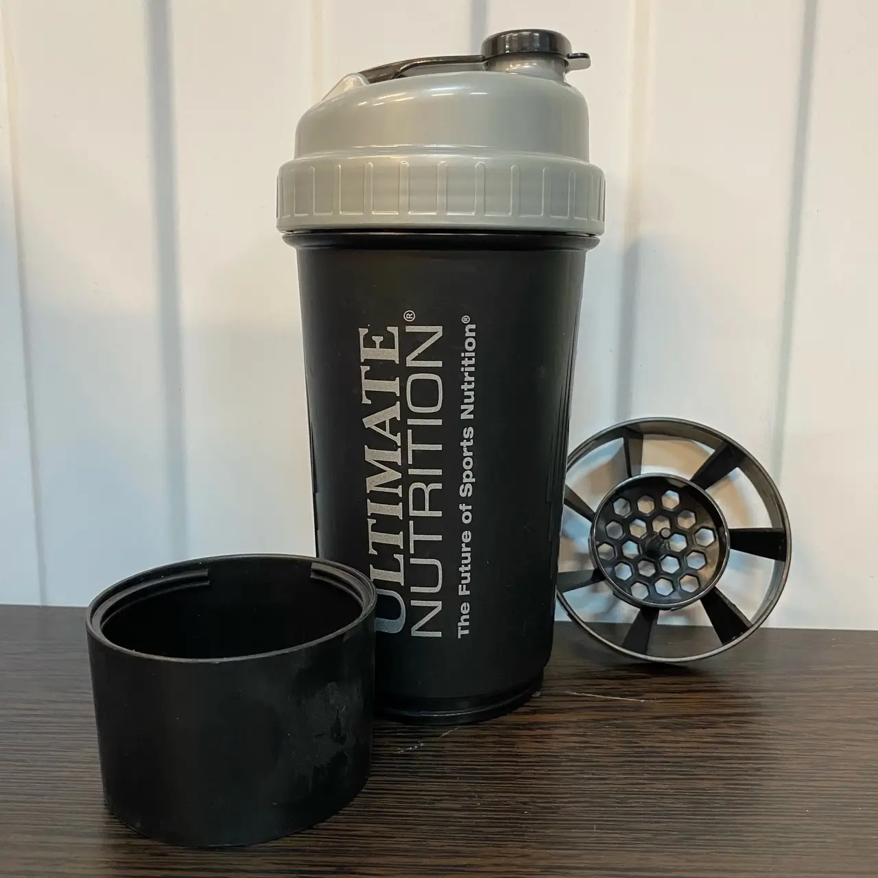 ULTIMATE Шейкер 600ml 2 отсека (чёрный + серый, потёртый)