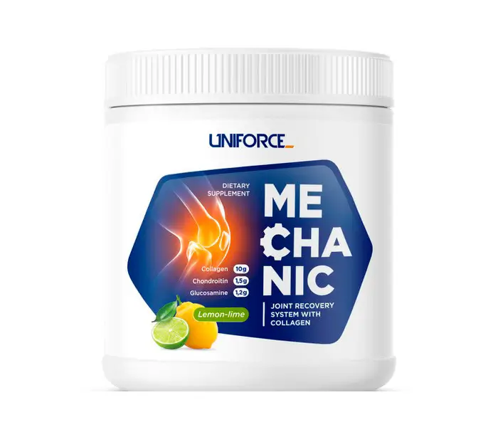 Mechanic от Uniforce содержит гидролизованный коллаген, хондроитин, глюкозамин, гиалуроновую кислоту и смесь энзимов для лучшего усвоения всех питательных веществ.