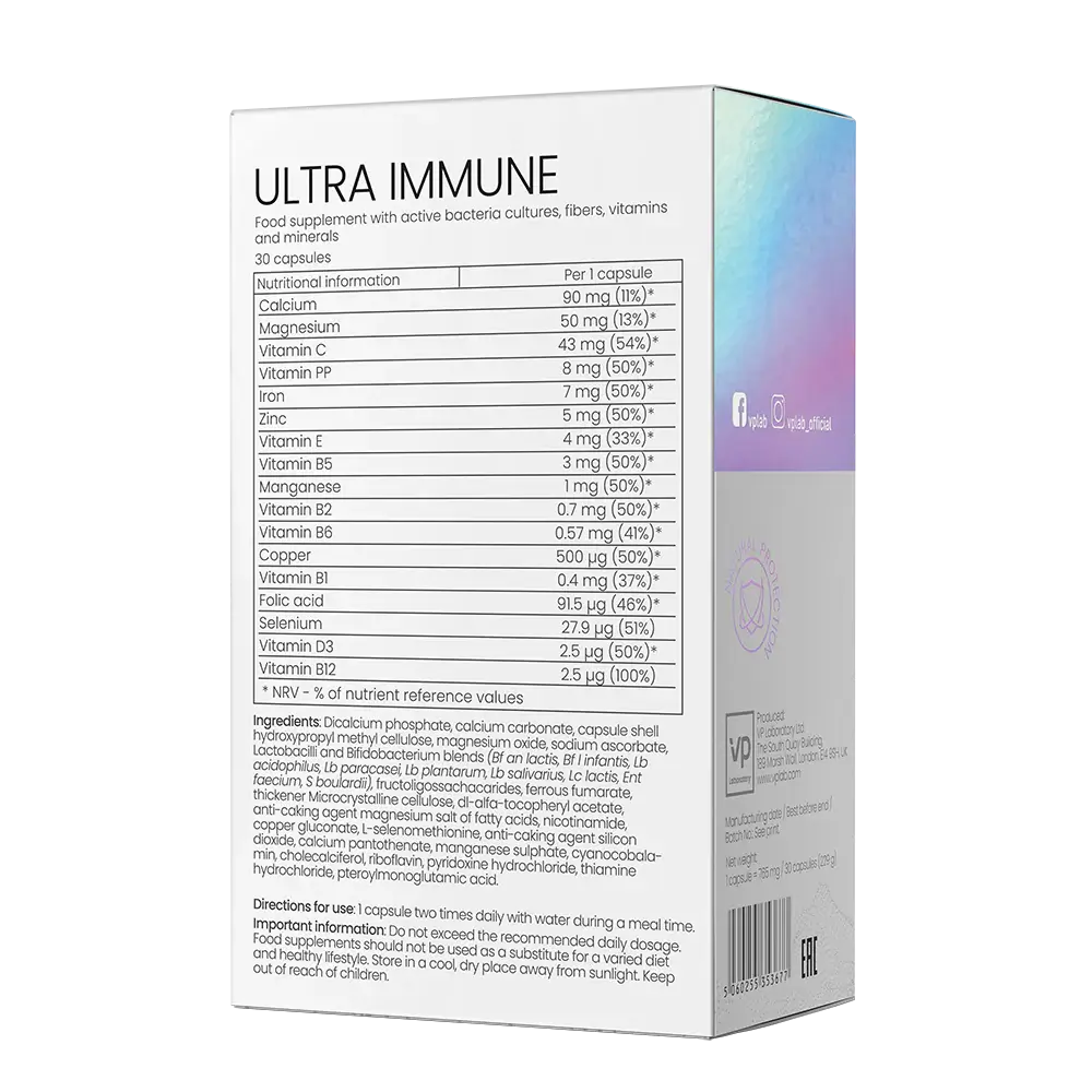 Болезнь легче предупредить, чем лечить – это знают все. Именно на укрепление иммунитета направлен продукт от VPLab Nutrition – Ultra Immune. Помимо сбалансированного комплекса витаминов и минералов, Ultra Immune содержит 9 штаммов полезных бактерий.