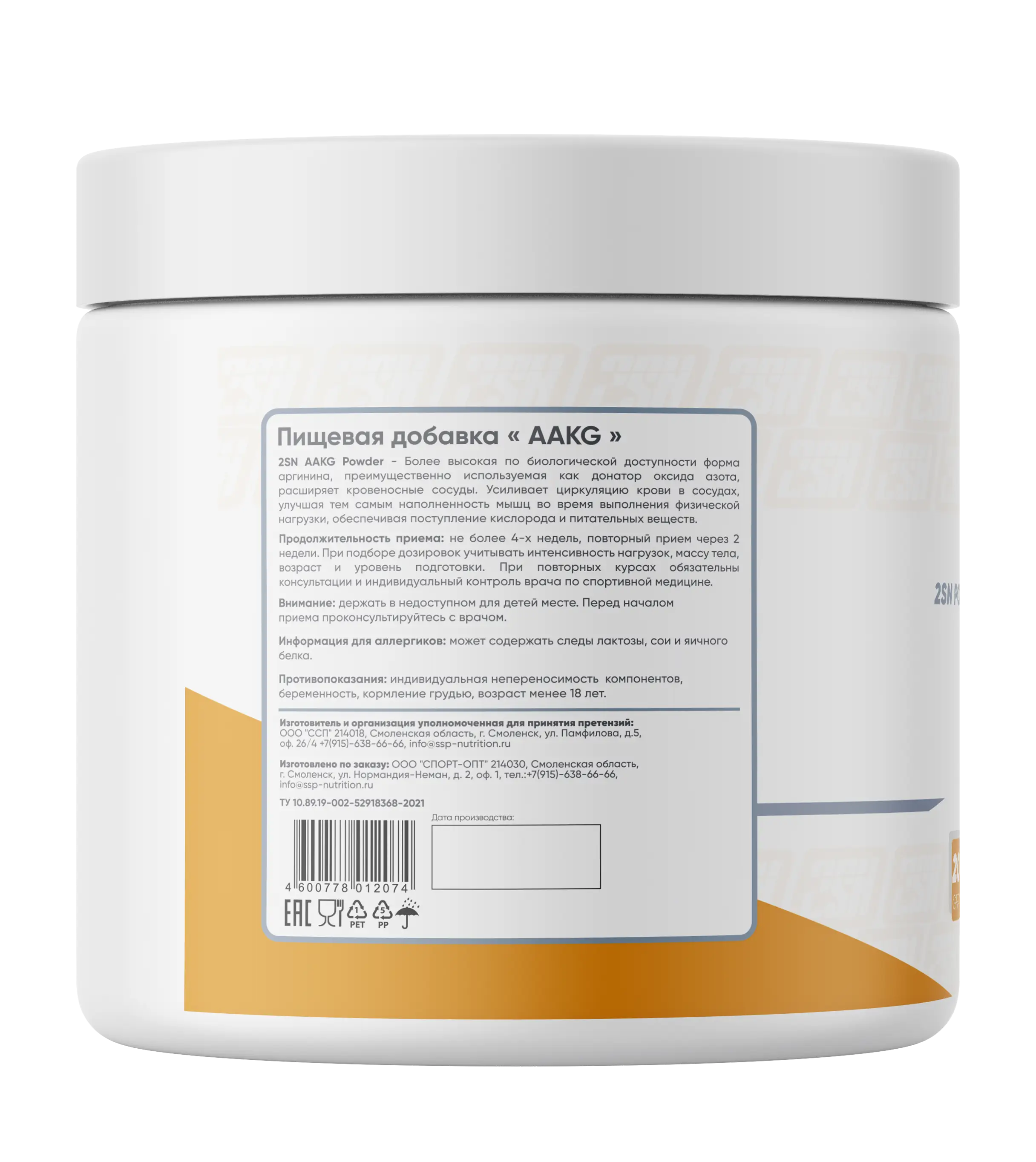 2SN AAKG powder (аргинин альфа-кетоглутарат) – это специальная форма аминокислоты аргинина. По сравнению со стандартной классической формой аргинина, альфа-кетоглутаровая имеет ряд преимуществ, главные из которых: более высокая биодоступность и пролонгированный эффект. Благодаря высокой биодоступность прием аргинина альфа-кетоглутарата осуществляется в более меньшей дозировке, по сравнению с обычным аргинином, при сохранении того же эффекта.