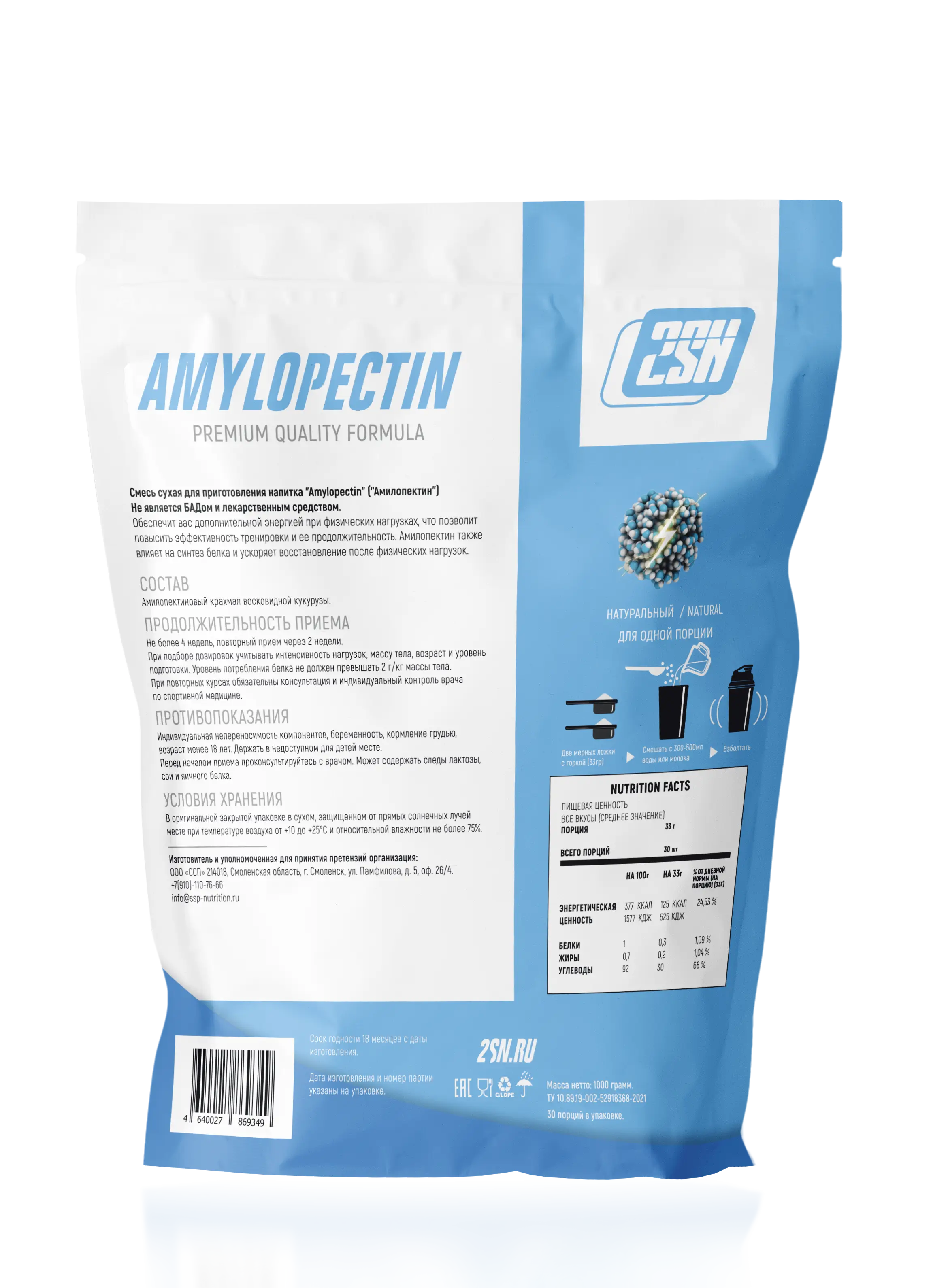 2SN Amylopectin – это вид сложных углеводов, имеющий более высокий и пролонгированный энергетический потенциал, чем простая глюкоза. Обеспечивает организм быстрой энергией во время нагрузки и восполняет запасы гликогена в мышцах после нее.