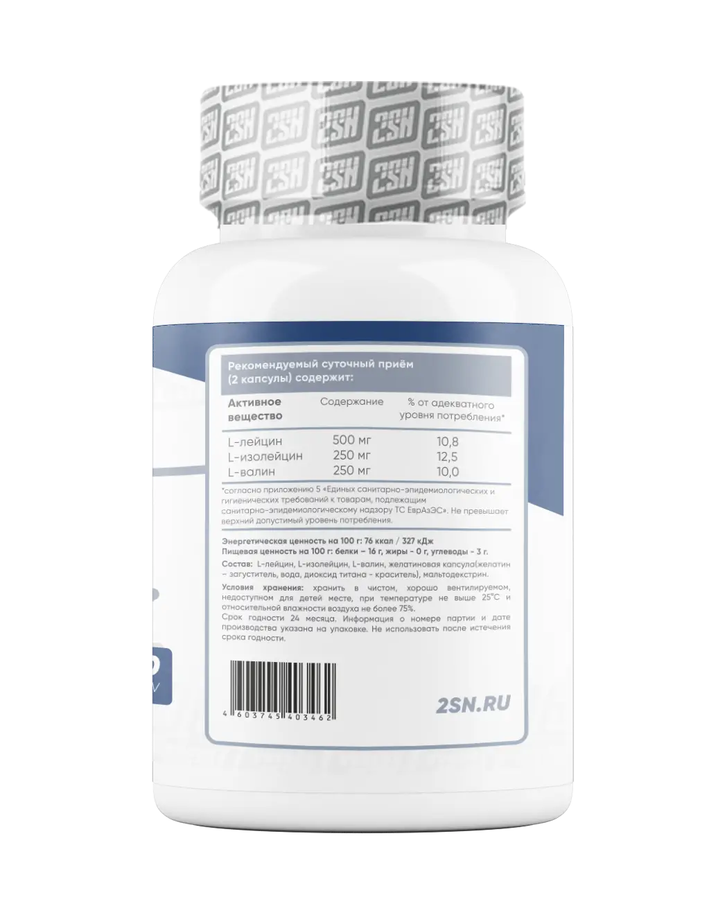 2SN BCAA 500mg – это комплекс трех незаменимых аминокислот – лейцины, изолейцины и валина – в капсулах, которые в наибольшей степени важны для роста, защиты и восстановления мышечной ткани.