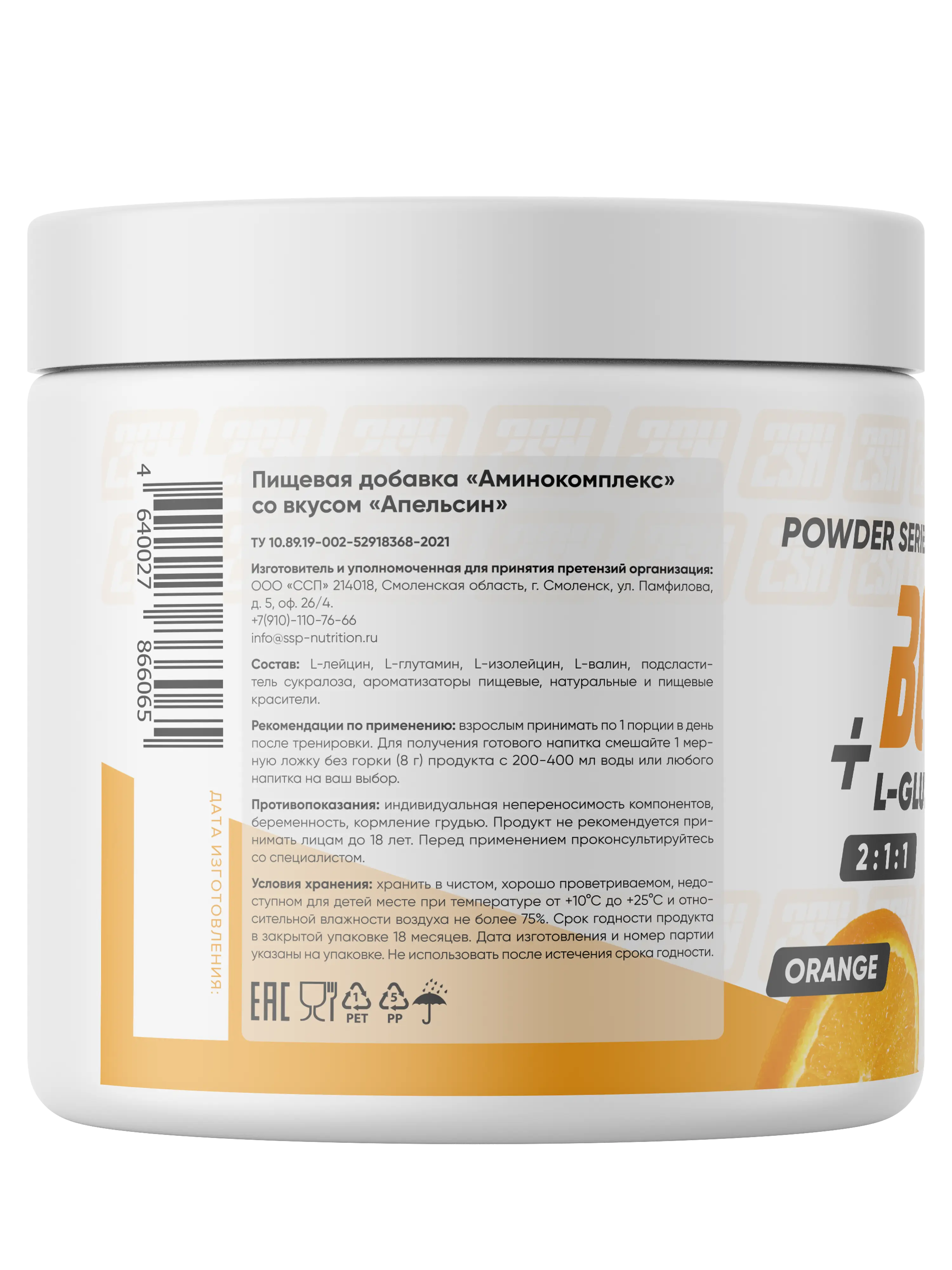 Состав: L-лейцин, L-глутамин,L-изолейцин,L-валин, подсладоститель сукралоза, араматизаторы пищевые, натуральные и пищевые красители.