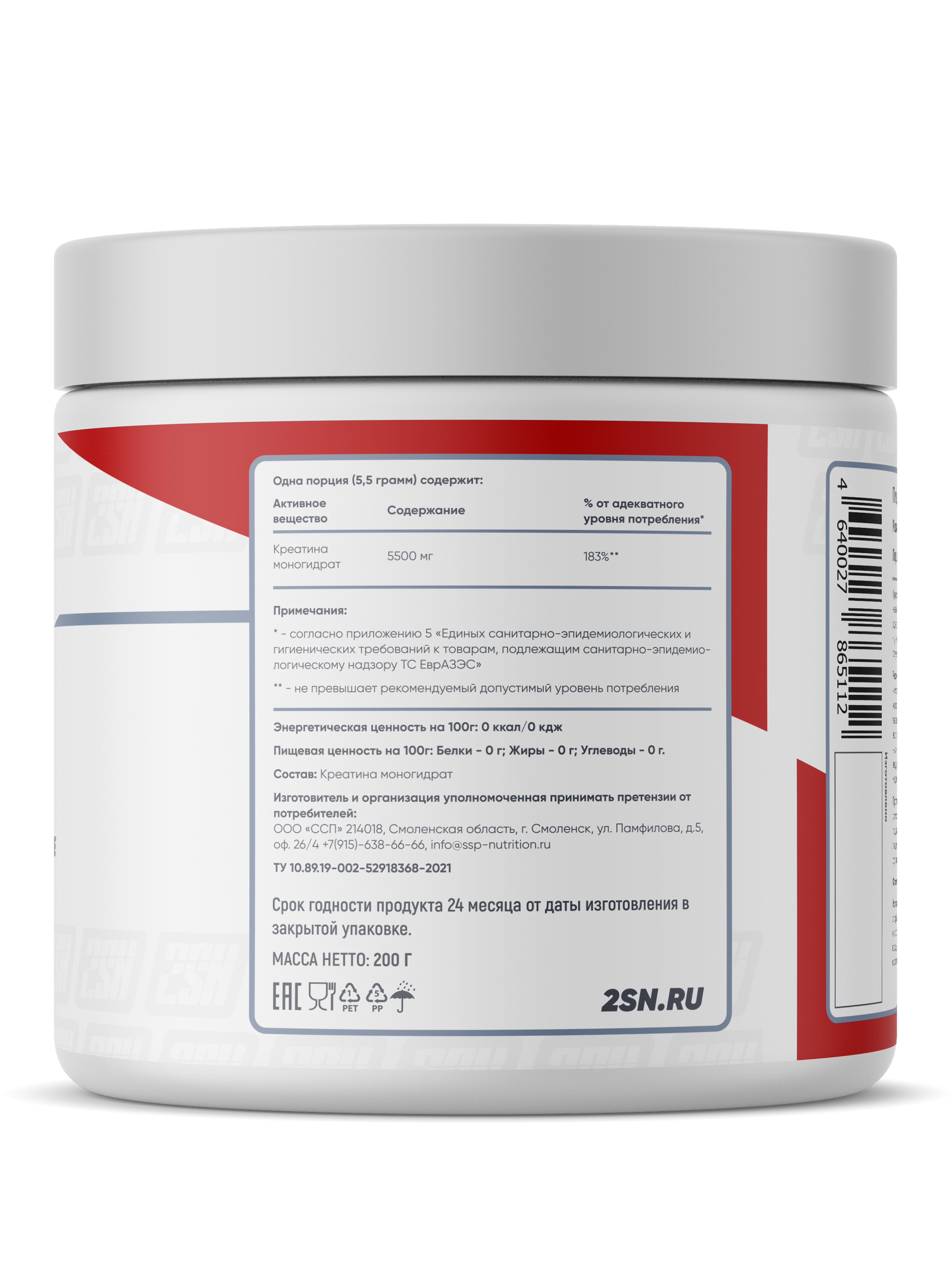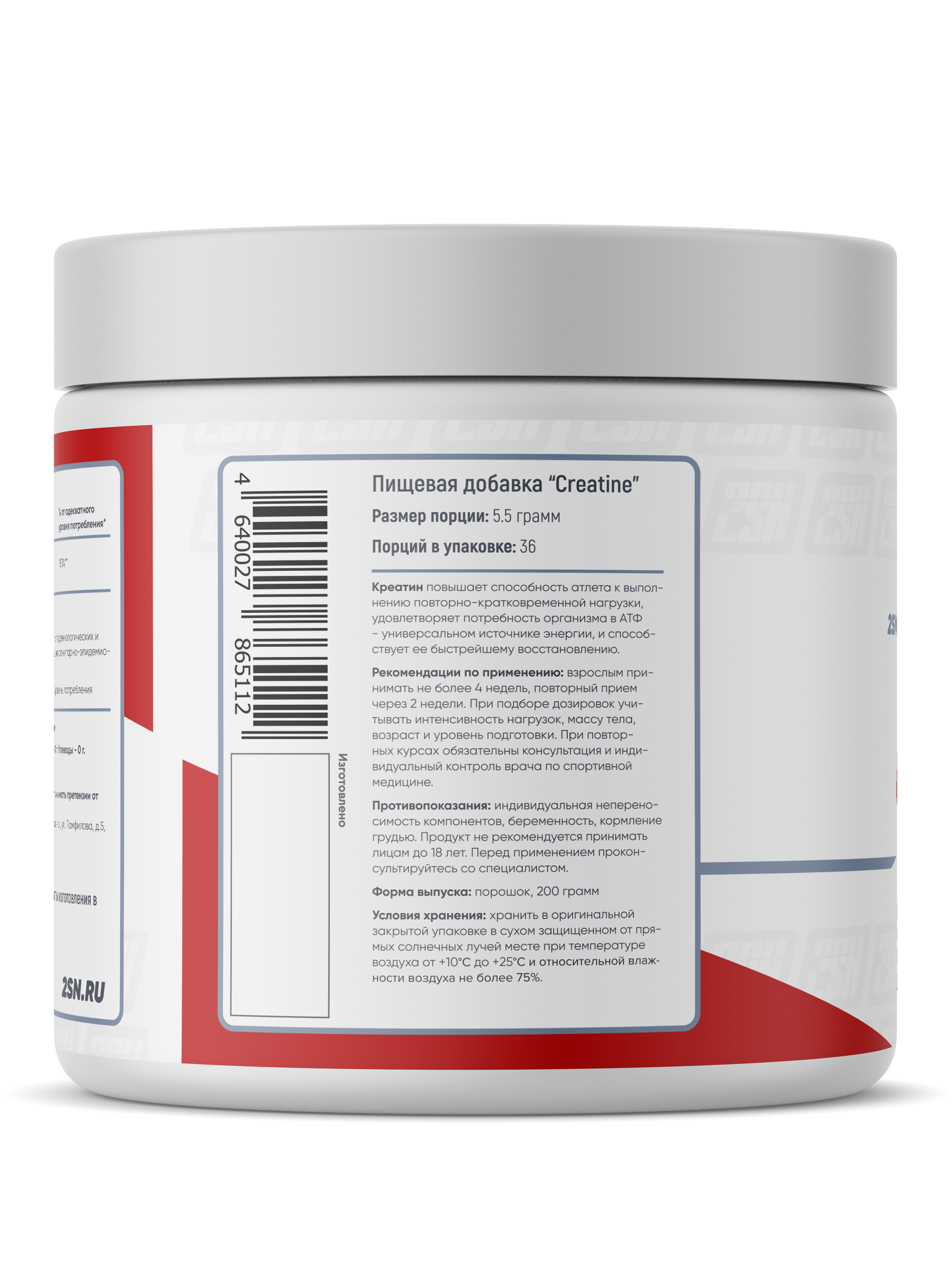 2SN Creatine – это основной источник энергии для организма при выполнении высокоинтенсивной нагрузки. Креатин является энергетическим субстратом для производства АТФ, когда мышцы подвергаются силовой или скоростно-силовой работе.