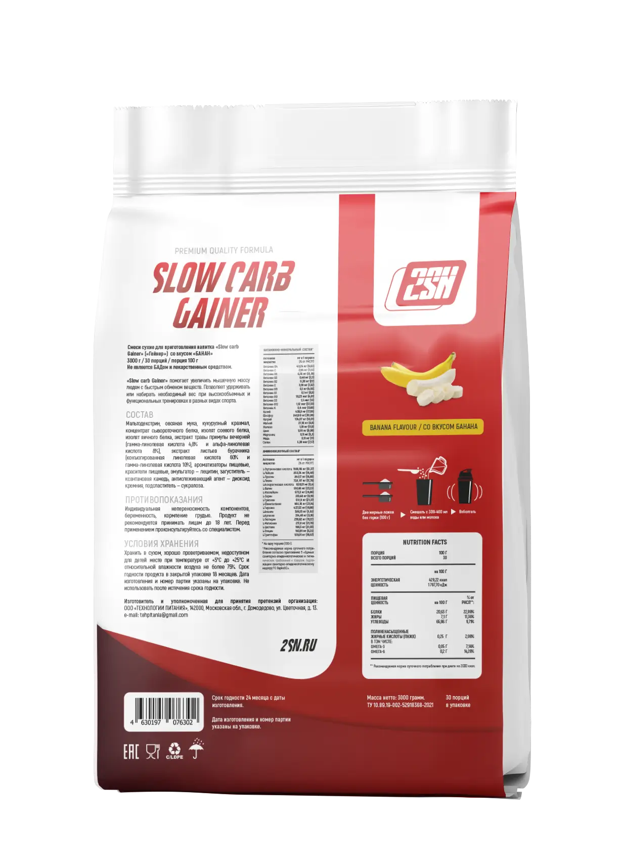 Slow carb gainer помогает увеличить мышечную массу людям с быстрым обменом веществ. Позволяет удердивать или набирать необъодимый вес при высокообъемных и функциональных тренировказ в разных видах спорта.