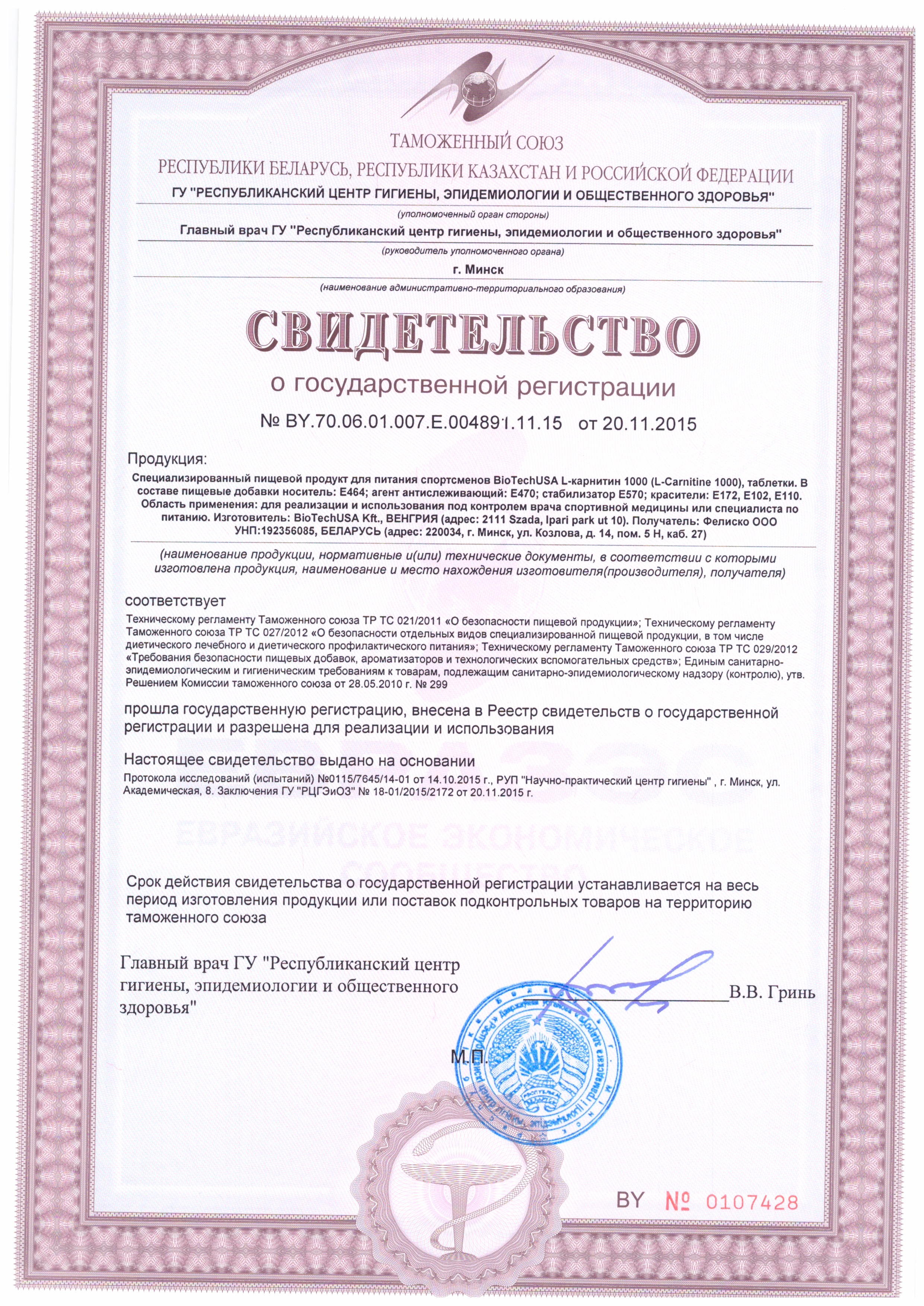 | L-карнитин L-тартрат | 1000 мг | |