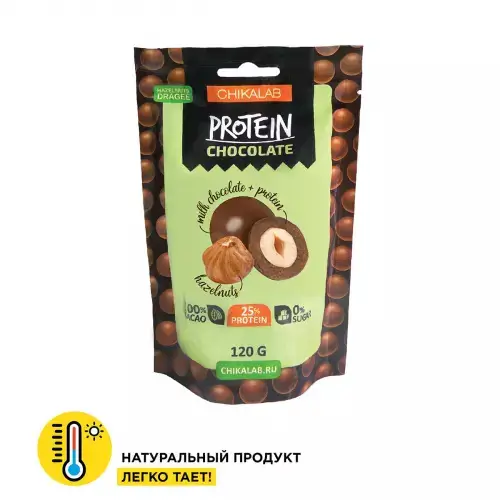 Абсолютная новинка в мире полезных перекусов - драже из цельного фундука, покрытого слоем протеина и обернутого в нежный молочный шоколад.