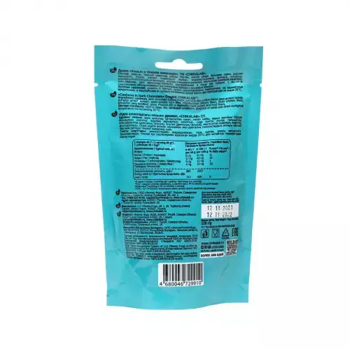 Состав: кешью, темный шоколад (какао тёртое, масло какао, белковая смесь (изолят горохового белка, изолят тыквенного белка), водорастворимые волокна кукурузы, олигофруктоза (пищевые волокна), инулин (пищевые волокна), эмульгатор (соевый лецитин), глянцеватель.
