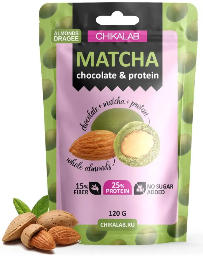 Bombbar CHIKALAB Драже Миндаль в белом шоколаде с зеленым чаем матча 120 гр