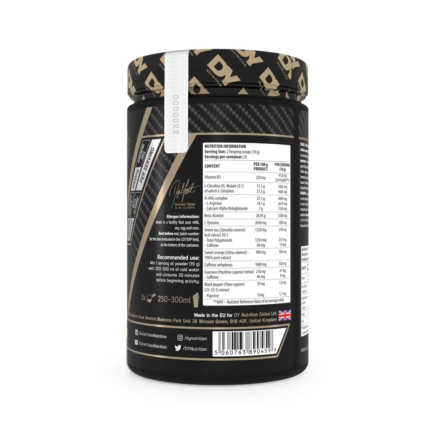 Это пищевая добавка перед тренировкой, предназначенная для повышения концентрации внимания, энергии и силы во время физических упражнений, что позволяет Вам преодолеть свои умственные и физические ограничения. С самой первой порции быстрое вливание умственных стимуляторов начинает действовать и запускает нейротрансмиттеры. Ваше внимание и концентрация заметно улучшатся, так как экстракт семян гуараны, кофеин, L-тирозин и экстракт зеленого чая усиливают ваше психическое состояние. Во время разминки Вы почувствуете следующую волну ингредиентов, поглощающих каждое мышечное волокно в вашем теле: цитруллин малат, бета-аланин и аргинин AKG в сочетании увеличивают приток крови к работающим мышцам и продлевают выносливость.