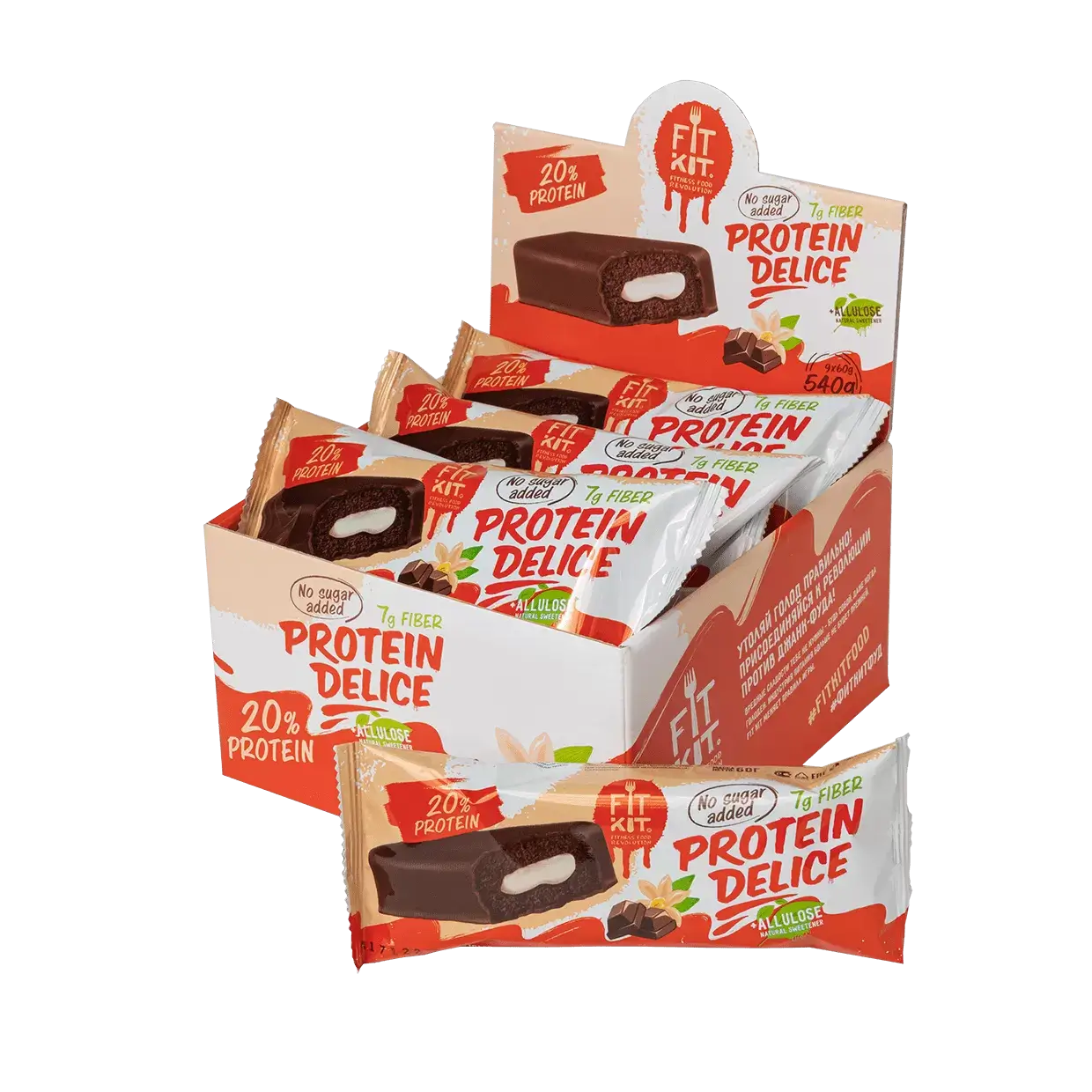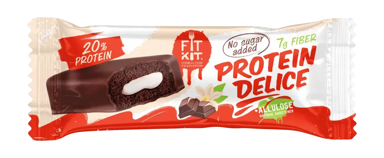 Шоколадный бисквит и нежный ванильный крем посередине.. Кажется чем-то запредельно желанным, но запретно калорийным? Отбрось все переживания и включай желания на полную, ведь теперь есть Protein Delice от FITKIT. С аллюлозой, без добавления сахара и муки протеиново-шоколадный десерт, от которого не стыдно, а даже приятно. Попробуй и угости друзей!