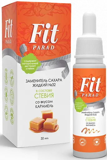 Fit Parad Комплексная пищевая добавка: Заменитель сахара "FitParad" жидкий № 32 со вкусом карамели 30 мл (флакон) по 18 шт в коробке
