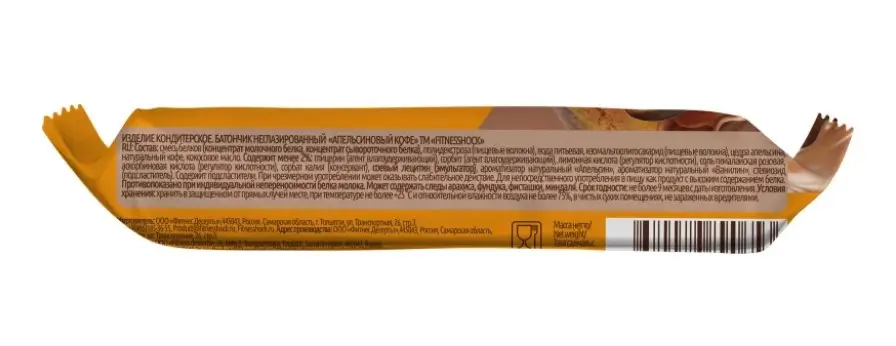 Смесь белков (концентрат молочного белка, концентрат сывороточного белка), полидекстроза (пищевые волокна), вода питьевая, изомальтоолигосахарид (пищевые волокна), цедра апельсина, натуральный кофе, кокосовое масло.