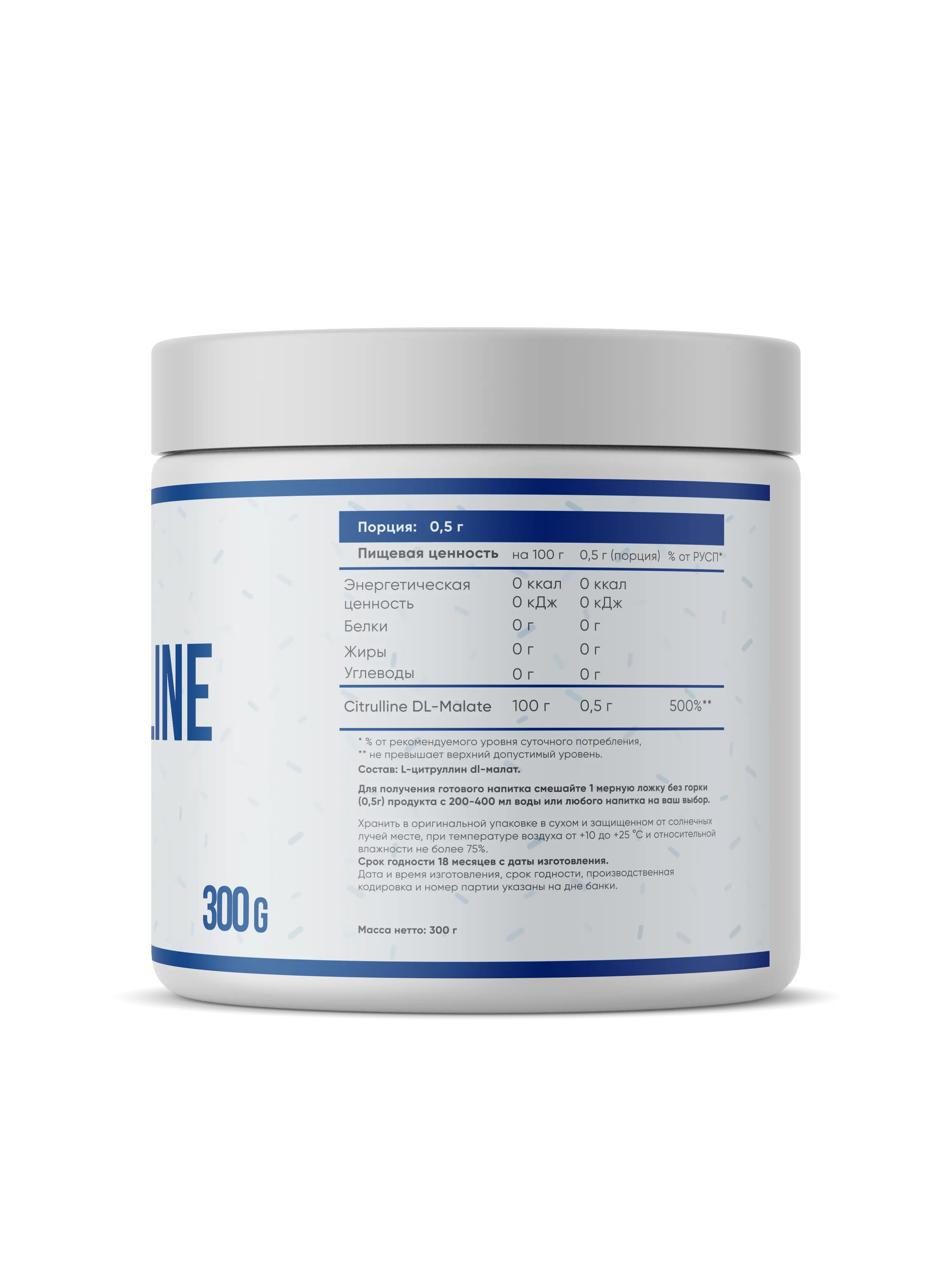 Наличие малата (яблочной кислоты) обеспечивает более высокую биодоступность цитруллина, а также повышает эффективность образования энергии внутри клетки (цикл образования АТФ). Особенно это актуально при длительных нагрузках, как силовых, так и аэробных.