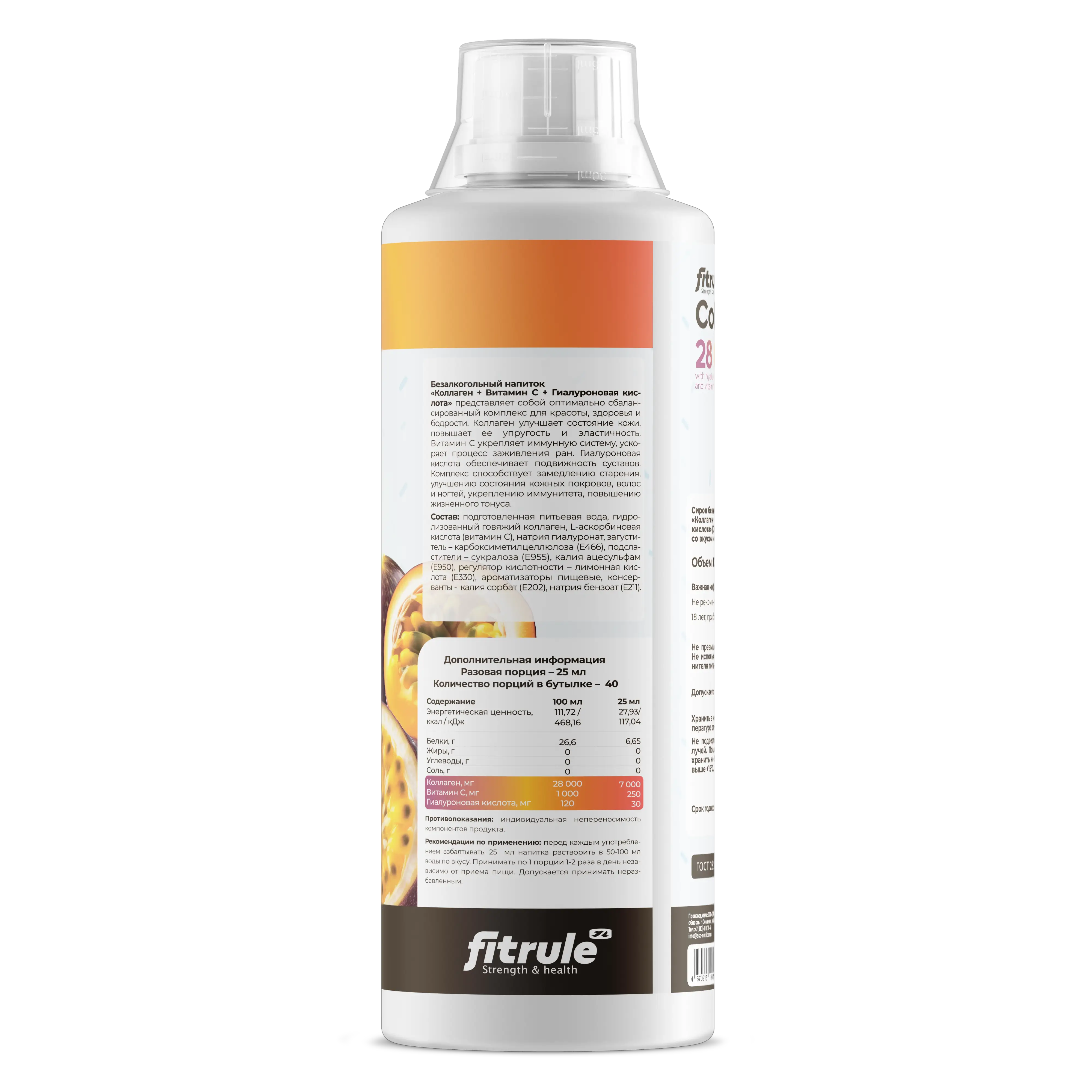 Состав: подготовленная питьевая вода, гидролизованный говяжий коллаген, кислота (витамин С), натрия гиалуронат, загуститель — карбоксиметилцеллюлоза (Е466), подсластители — сукралоза (Е955), калия ацесульфам (Е95О), регулятор кислотности - лимонная кислота (ЕЗЗО), ароматизаторы пищевые, консерванты - калия сорбат (Е2О2), натрия бензоат (Е21).