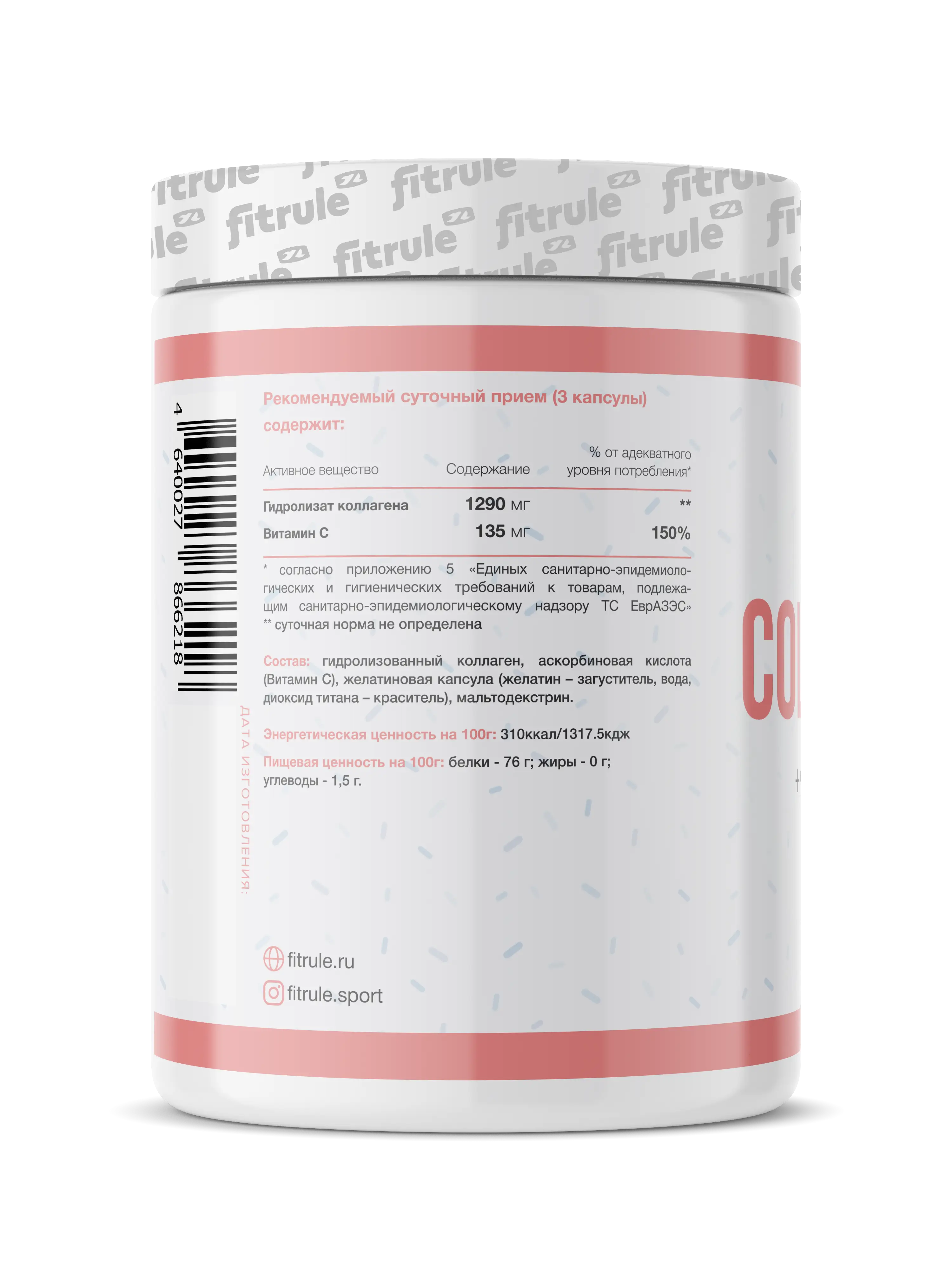 Fitrule Collagen + Vitamin C – это гидролизированный коллаген с добавлением витамина С в капсулах. Имеет высокий уровень усвояемости и биодоступности для организма.