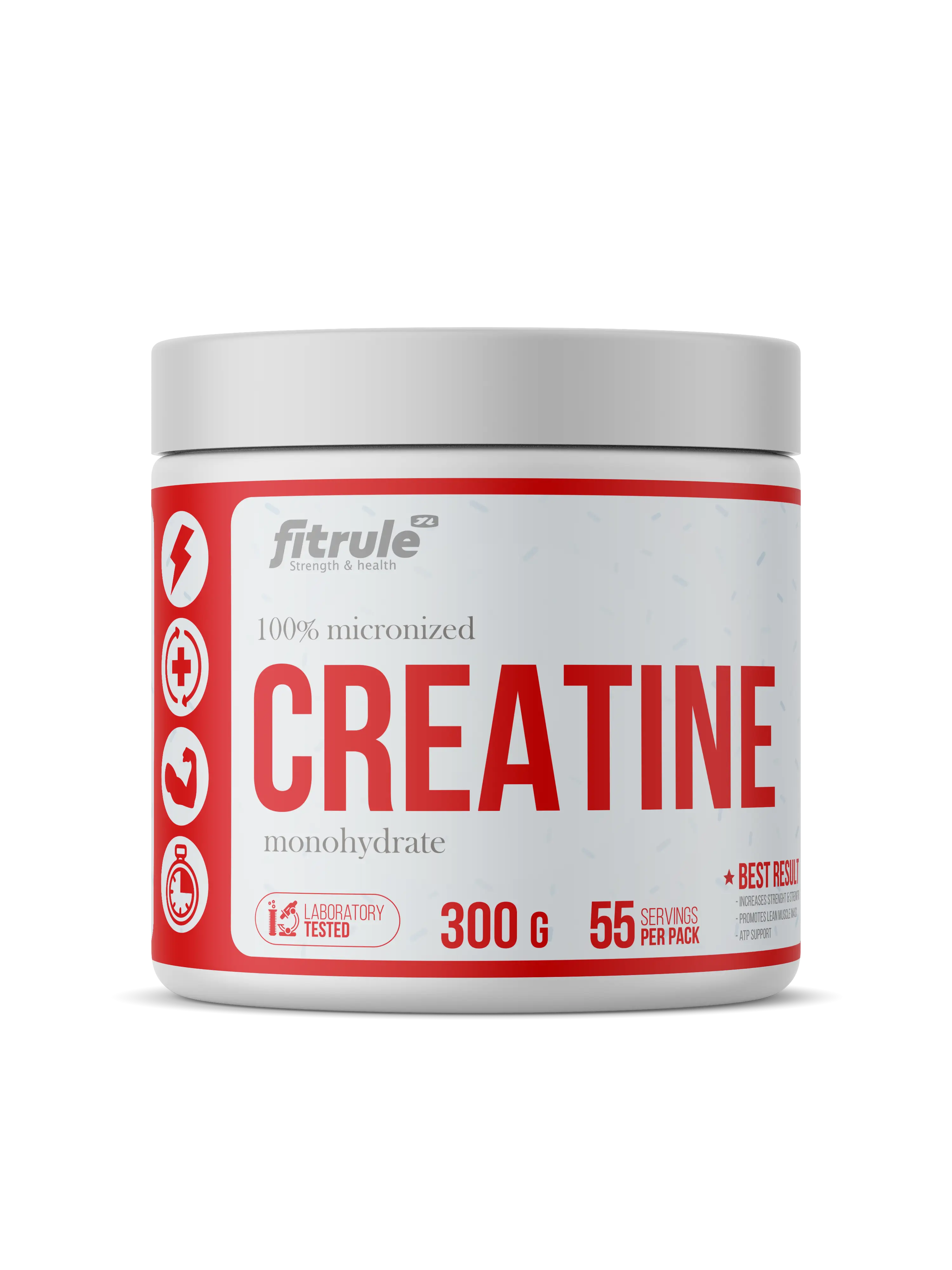 Fitrule Creatine – это основной источник энергии для организма при выполнении высокоинтенсивной нагрузки. Креатин является энергетическим субстратом для производства АТФ, когда мышцы подвергаются силовой или скоростно-силовой работе.