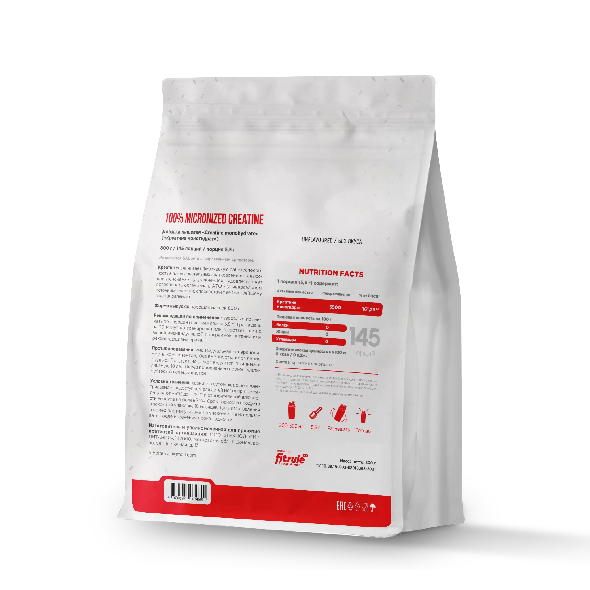 Fitrule Creatine – это основной источник энергии для организма при выполнении высокоинтенсивной нагрузки. Креатин является энергетическим субстратом для производства АТФ, когда мышцы подвергаются силовой или скоростно-силовой работе.