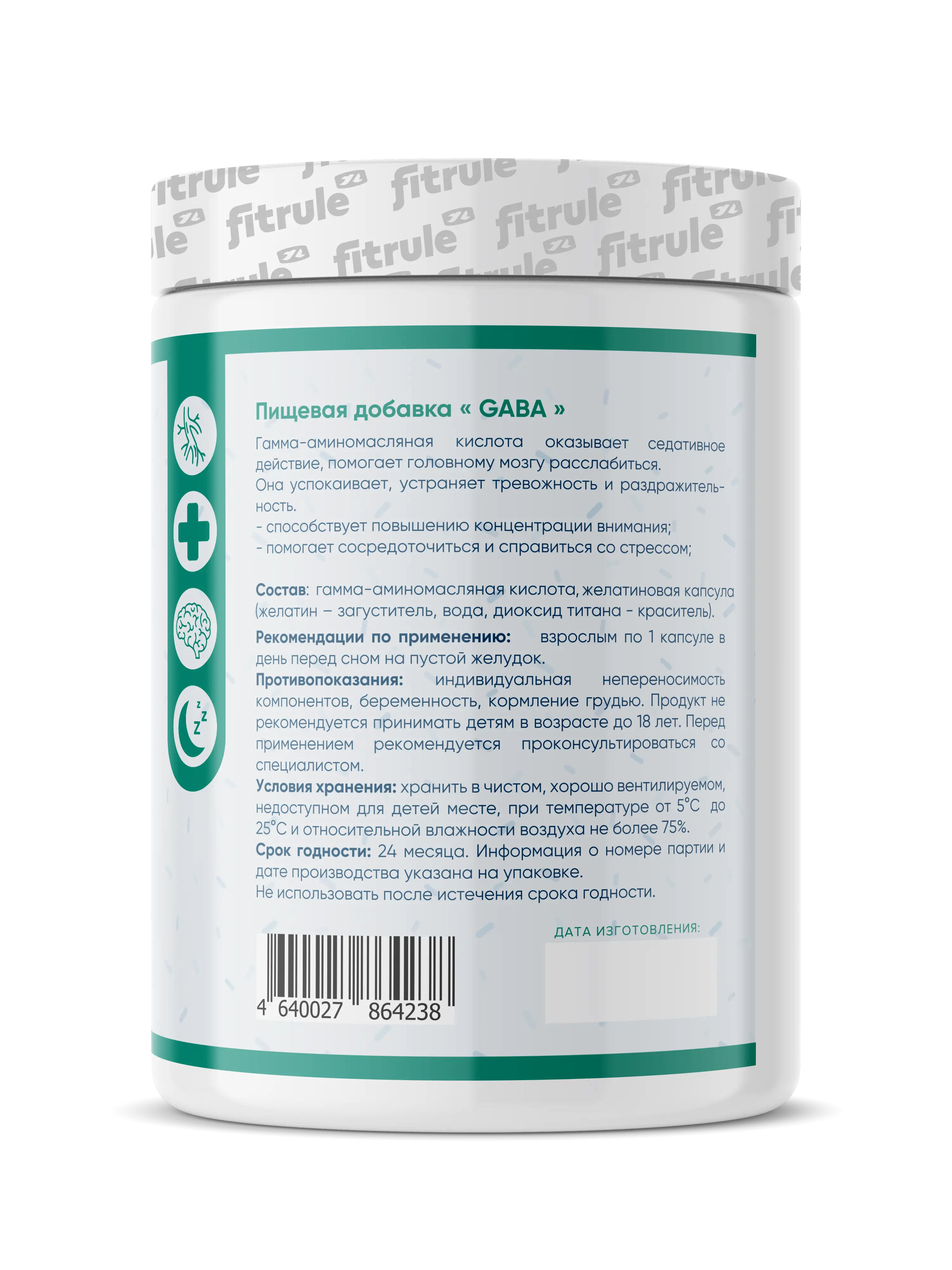 Fitrule GABA – это гамма-аминомасляная кислота, ноотроп. ГАМК (GABA) является тормозным нейромедиатором в организме и отвечает за снижение активность центральной нервной системы.