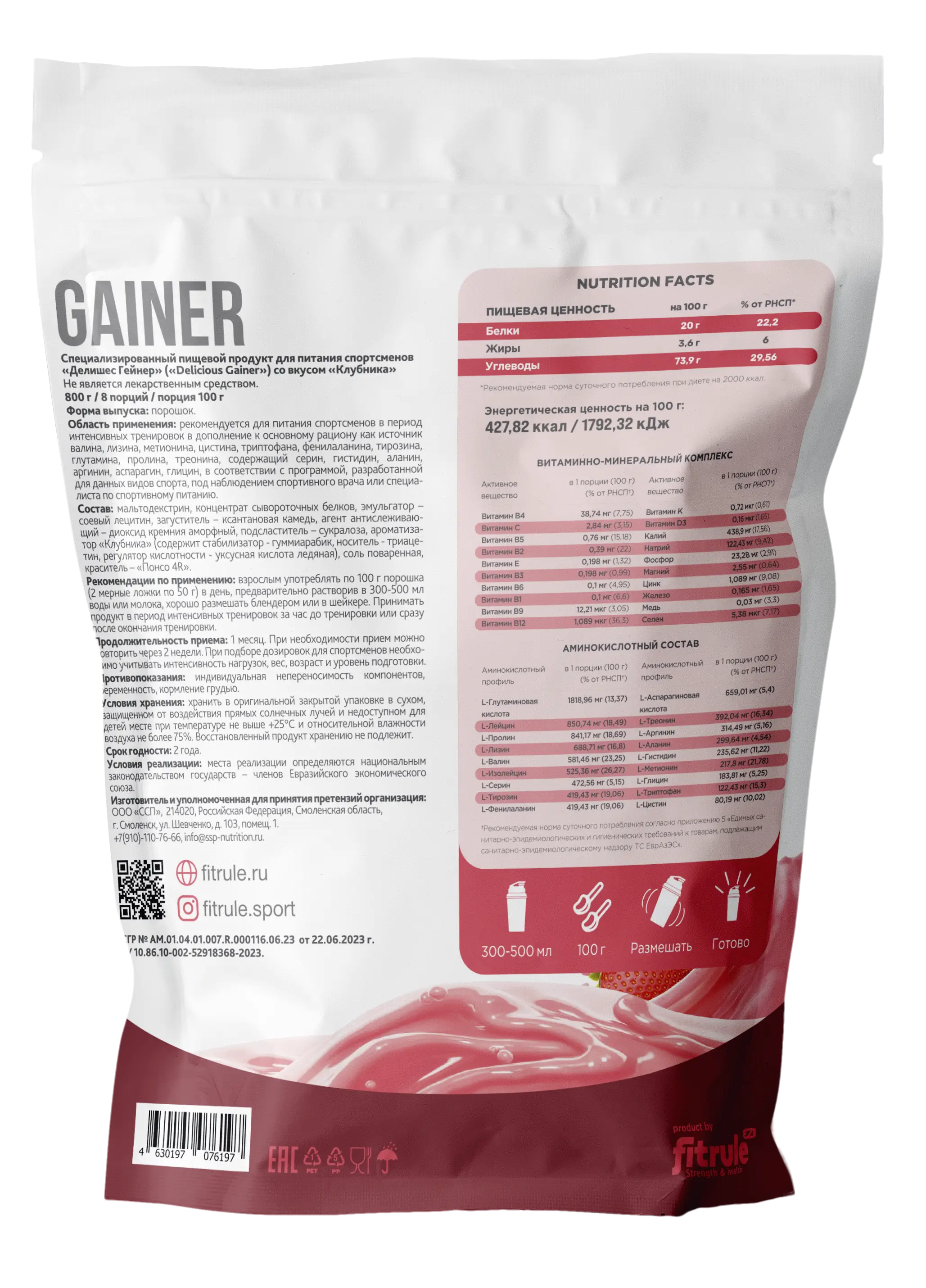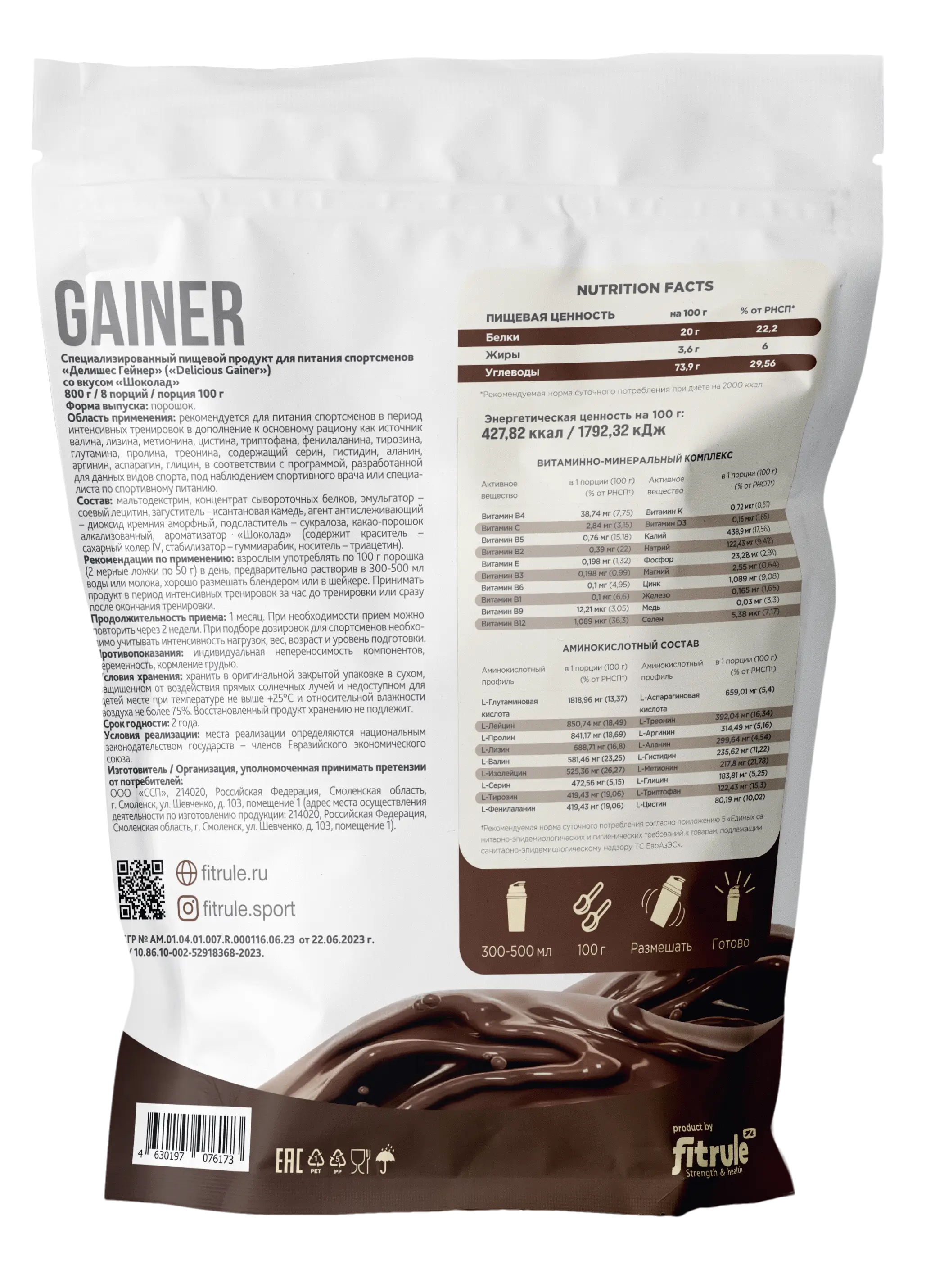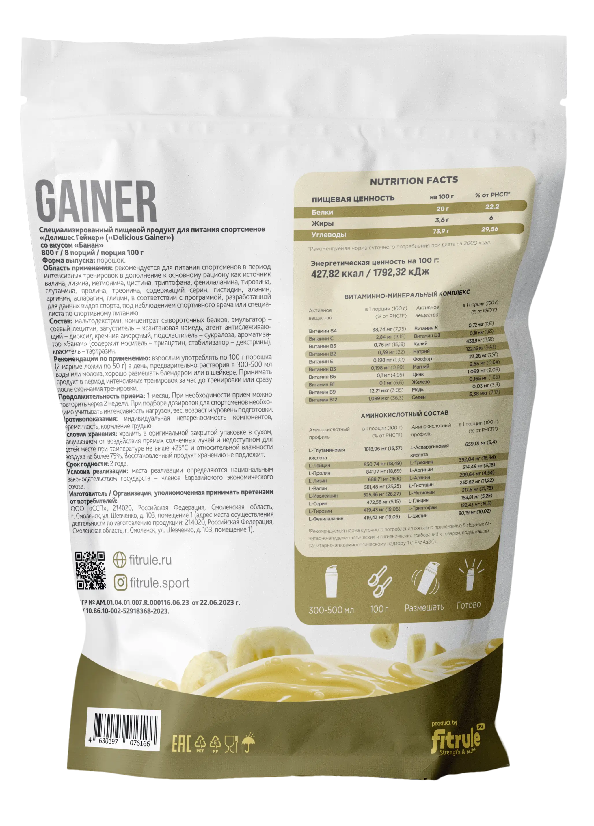 Fitrule Gainer 800g – мощное восстановление и набор массы