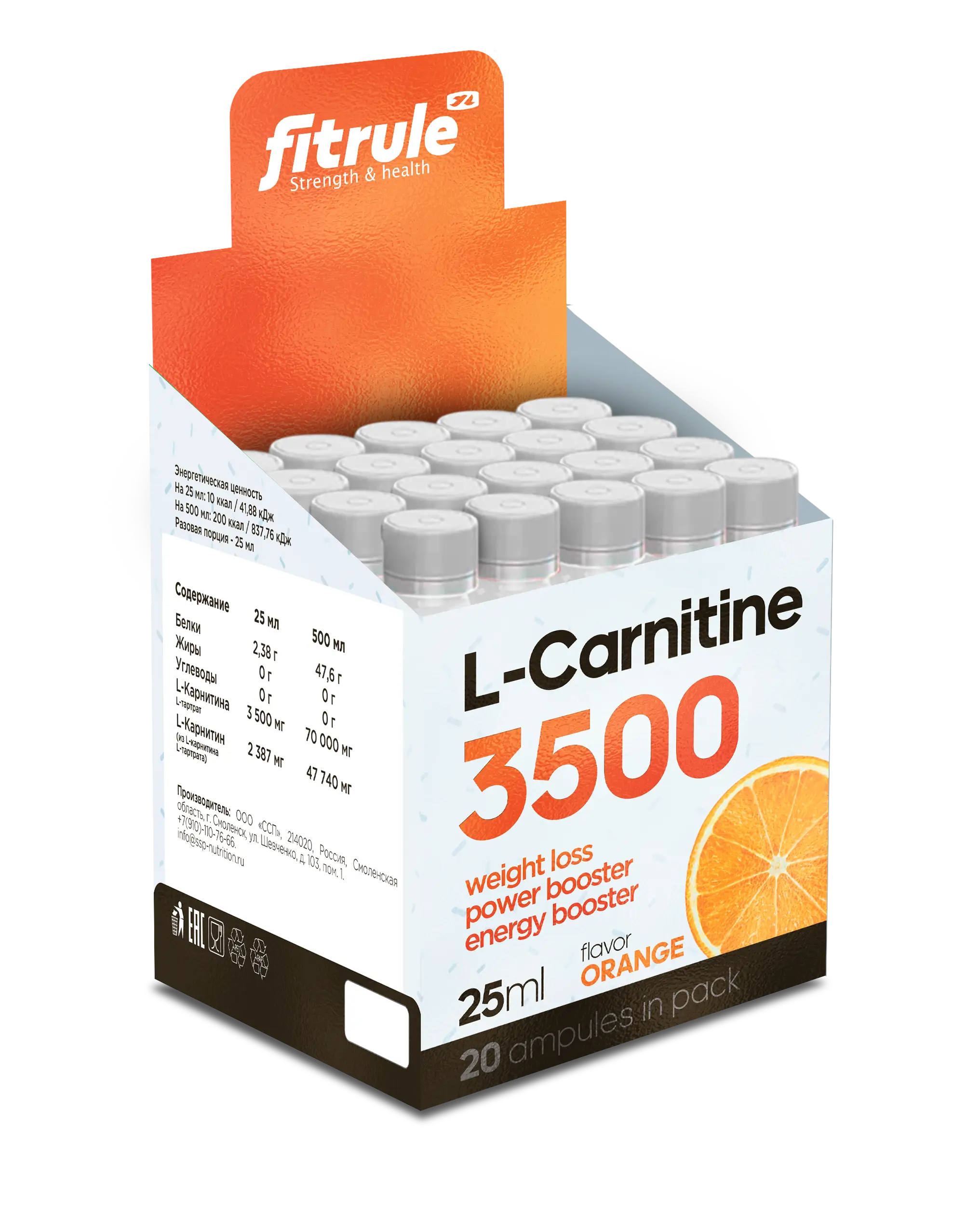 Fitrule L-Carnitine 3500mg 25ml amp — это мощное средство для поддержки метаболизма и улучшения энергообмена. Каждая ампула содержит 3500 мг высококачественного L-карнитина, который помогает вашему организму эффективнее использовать жир в качестве источника энергии.