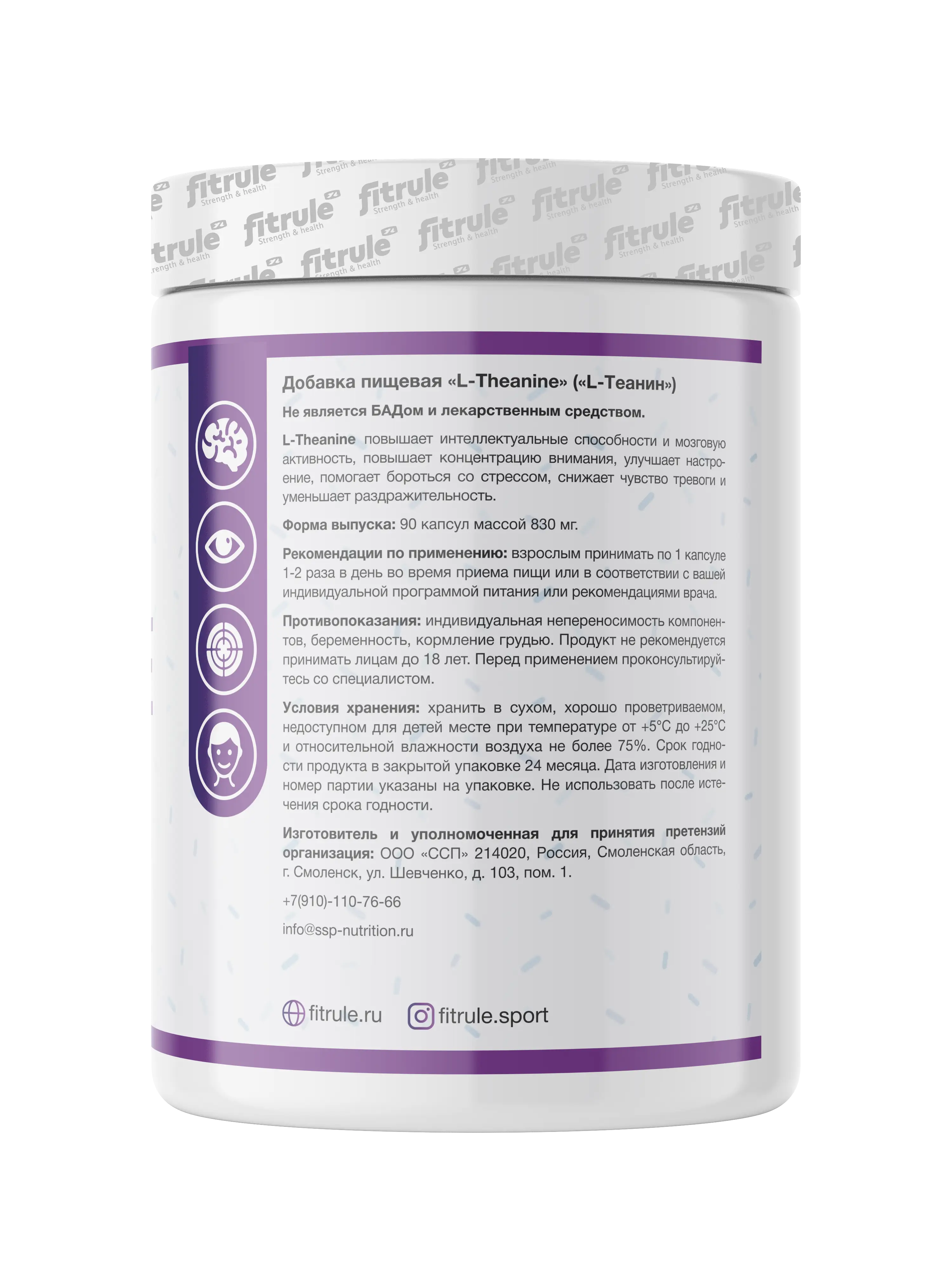 Состав: |-теанин, рисовая мука, желатиновая капсула (желатин — загуститель, диоксид титана — краситель), антислеживающий агент — диоксид кремния.