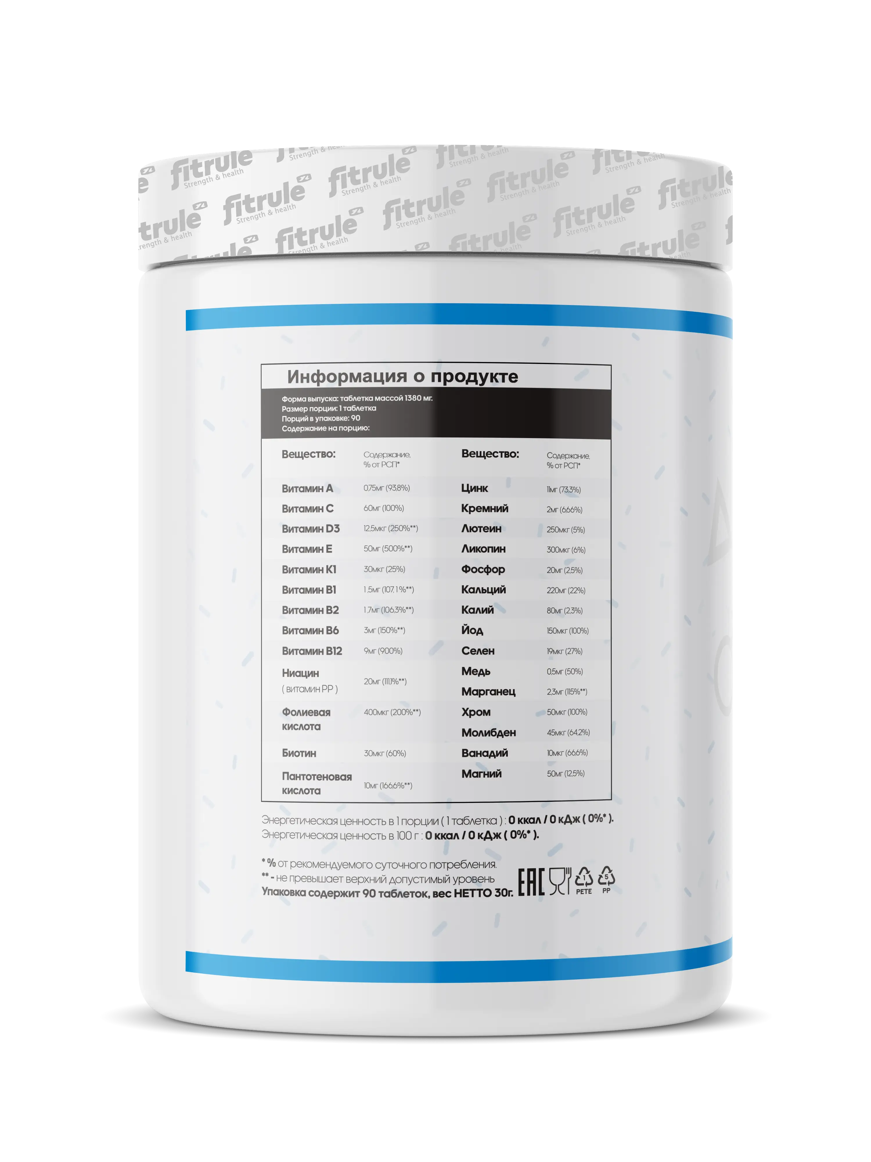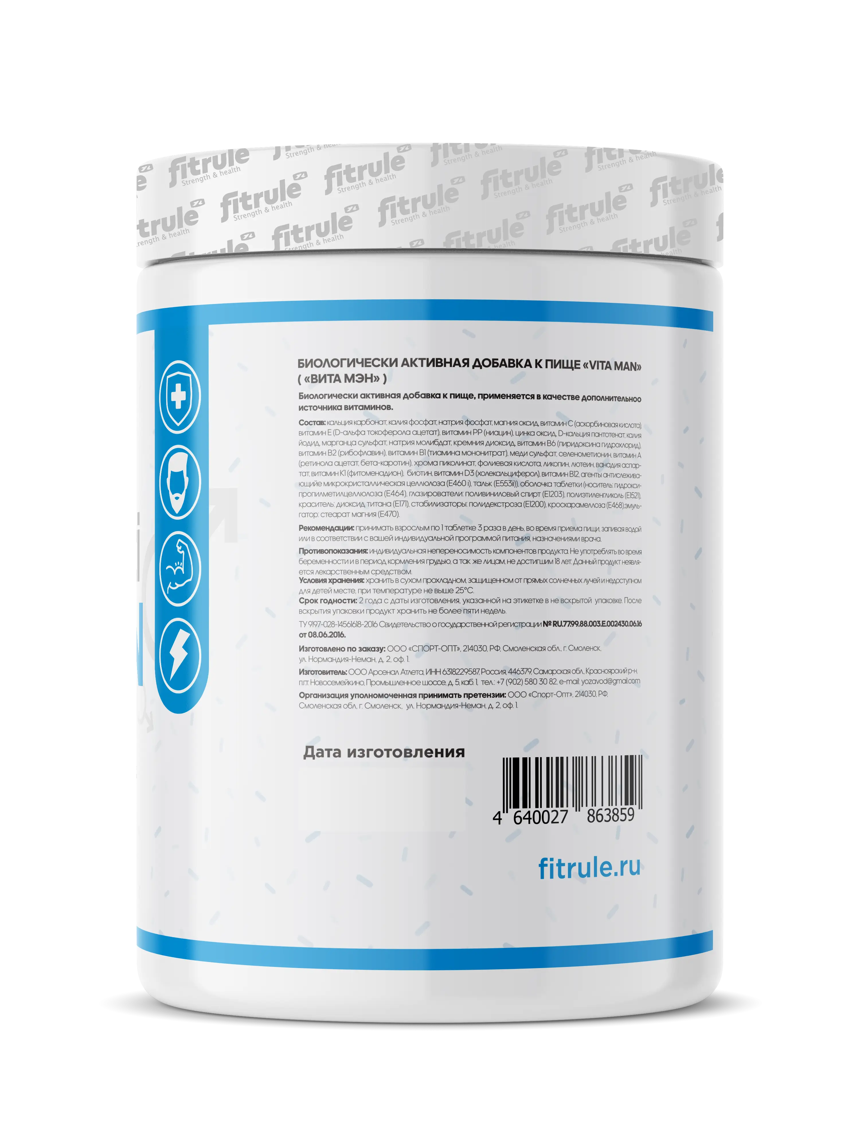 Fitrule MultiMen – это мужской сбалансированный комплекс витаминов и минералов для ежедневного приема. Имеет невысокие концентрации компонентов, поэтому может быть использован не только спортсменами, но и людьми ведущих малоподвижный образ жизни.