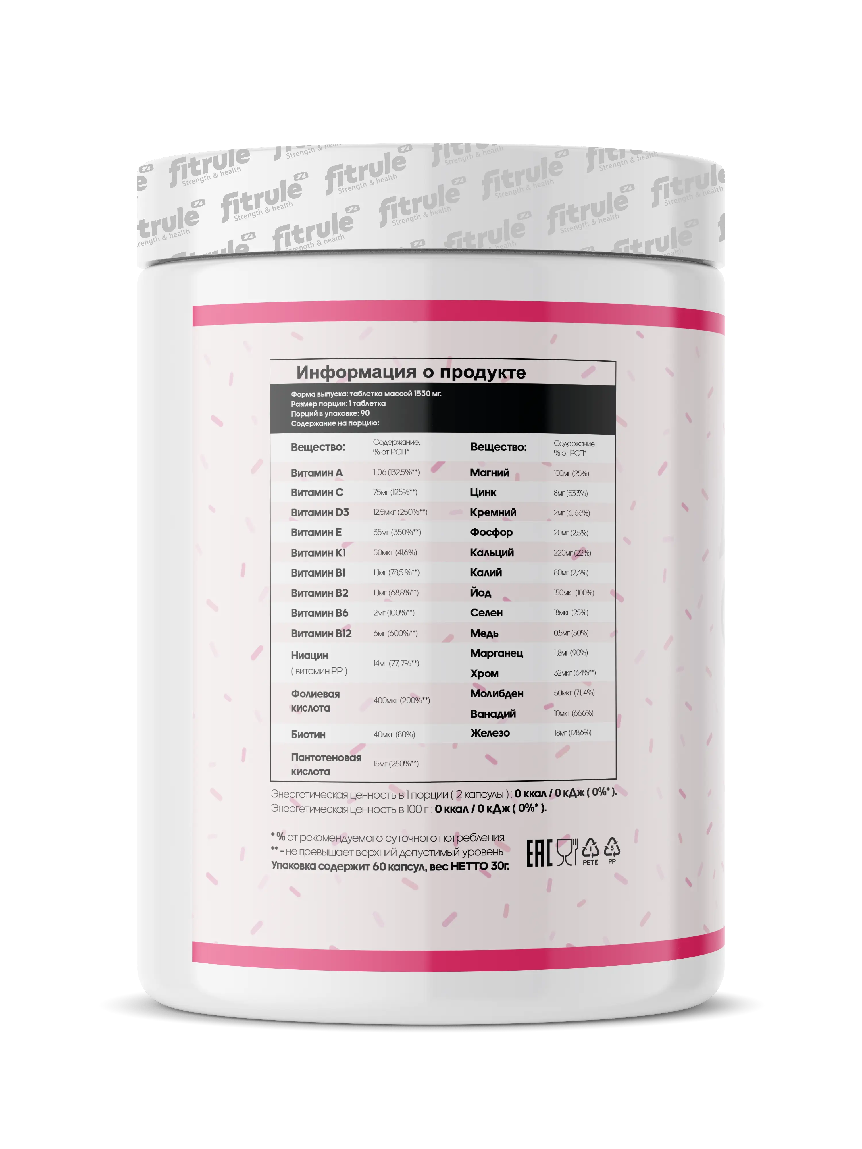 Fitrule MultiWomen – это витаминно-минеральный комплекс для улучшения состояния женского здоровья. Имеет невысокие концентрации компонентов, поэтому может быть использован не только спортсменами, но и людьми ведущих малоподвижный образ жизни.