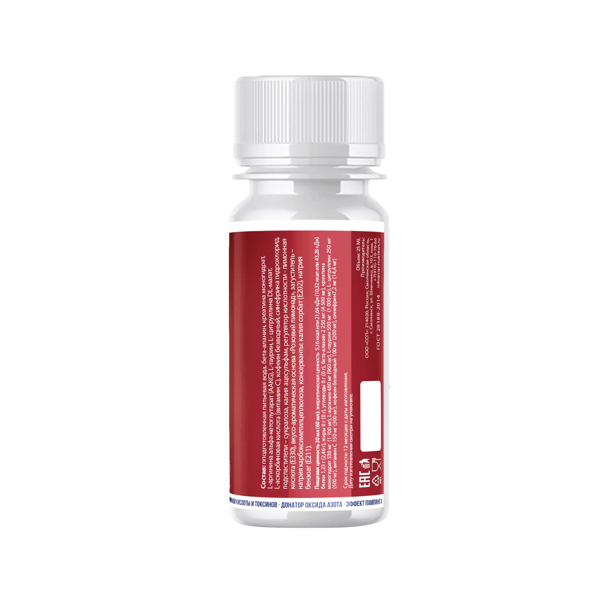 Состав: подготовленная питьевая вода, бета-аланин, креатина моногидрат, альфа-кетоглутарат (AAkG), L- цитруллина, аскорбиновая кислота (витамин С), кофеин безводный, синефрина гидрохлорид, подсластители - сукралоза, калия ацесульфам, регулятор кислотности - лимонная кислота (ЕЗЗО), вкусо-ароматическая основа «Розовый лимонад», загуститель - натрия карбоксиметилцеллюлоза, консерванты: калия сорбат (Е202), натрия бензоат (Е211).
