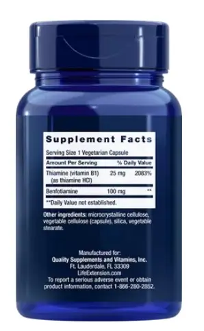 LIFE Extension Benfotiamine with Thiamine 100 mg, 120 vegetarian capsules