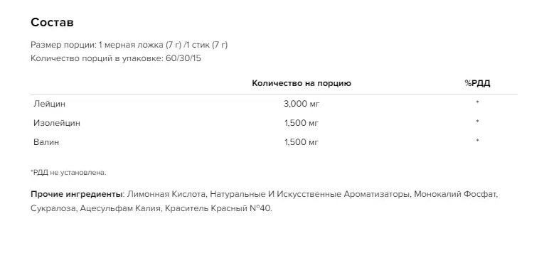 - Оптимальное соотношение BCAA 2:1:1: лейцин, изолейцин и валин работают вместе для поддержки мышечного роста и предотвращения катаболизма.
