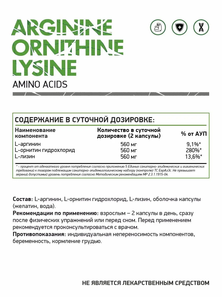Natural Supp Arginine ornithine lysine 60 caps БАД