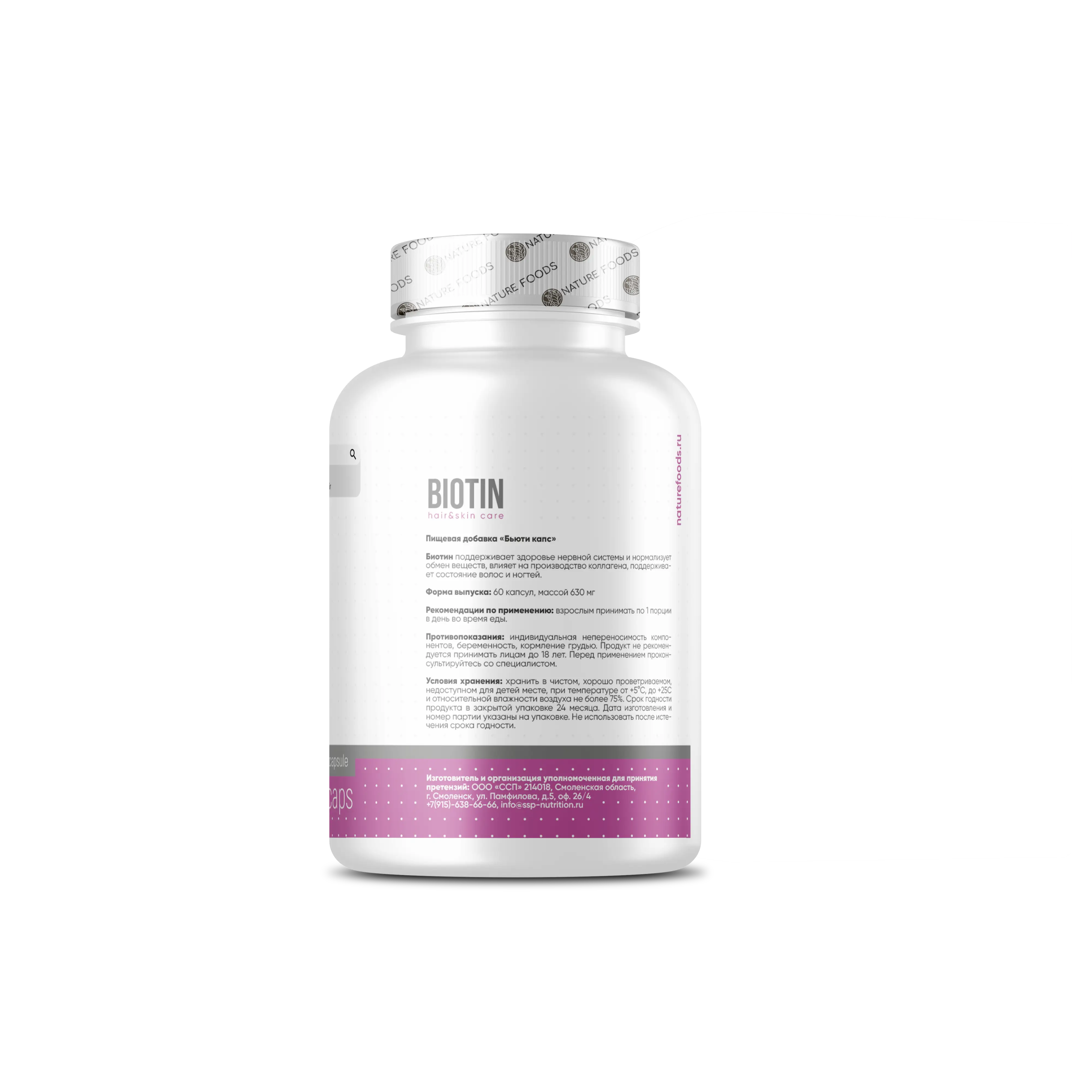 Nature Foods Biotin – это витаминоподобное вещество, относящееся к группе В. Биотин, прежде всего, положительно влияет на синтез кератина – главного белка волос и ногтей, а так же на синтез коллагена – белка кожи. Благодаря нормально содержание биотина в организме, у волос отсутствует ломкость и сухость, всегда активен их рост. Кожа и ногти имеет целостную структуру.