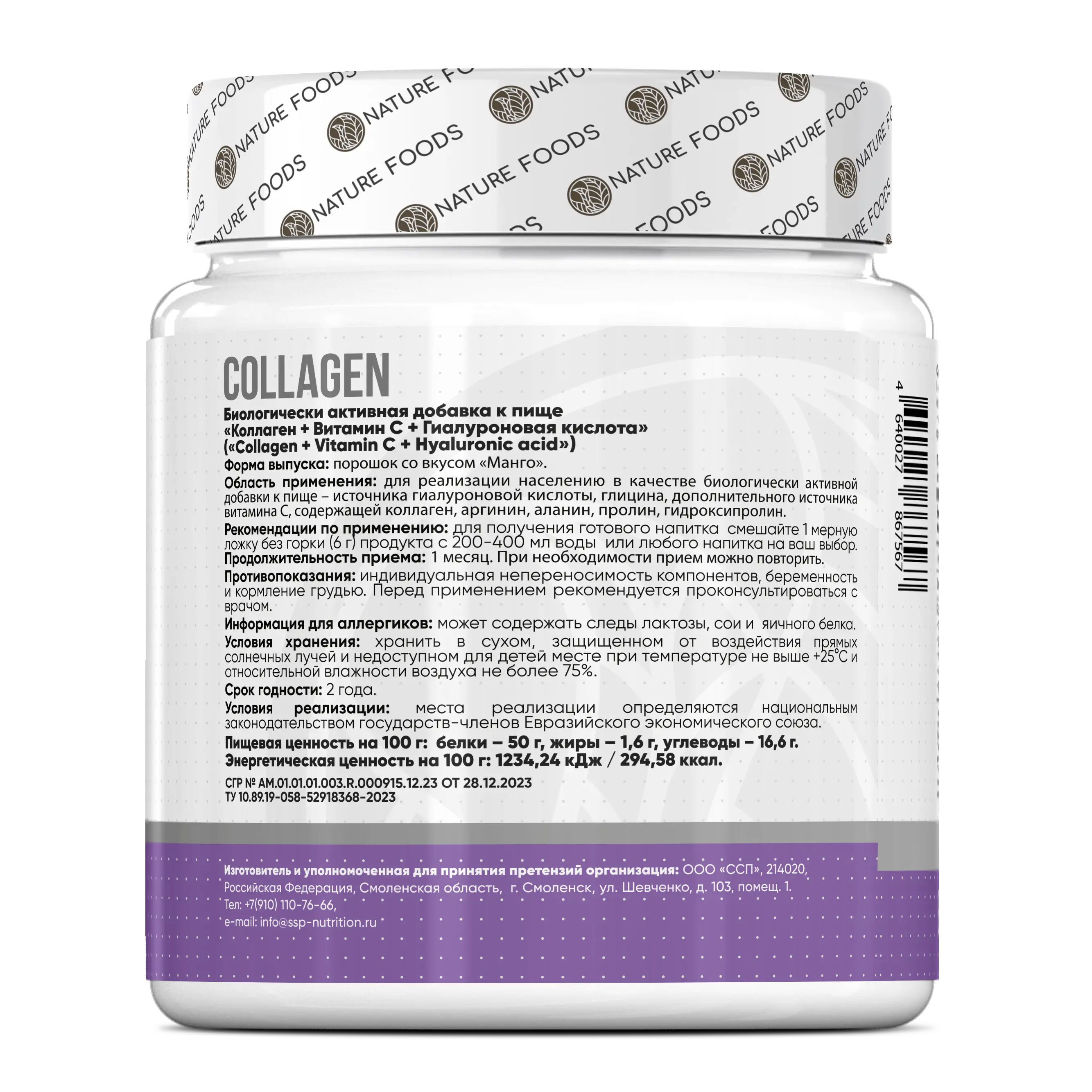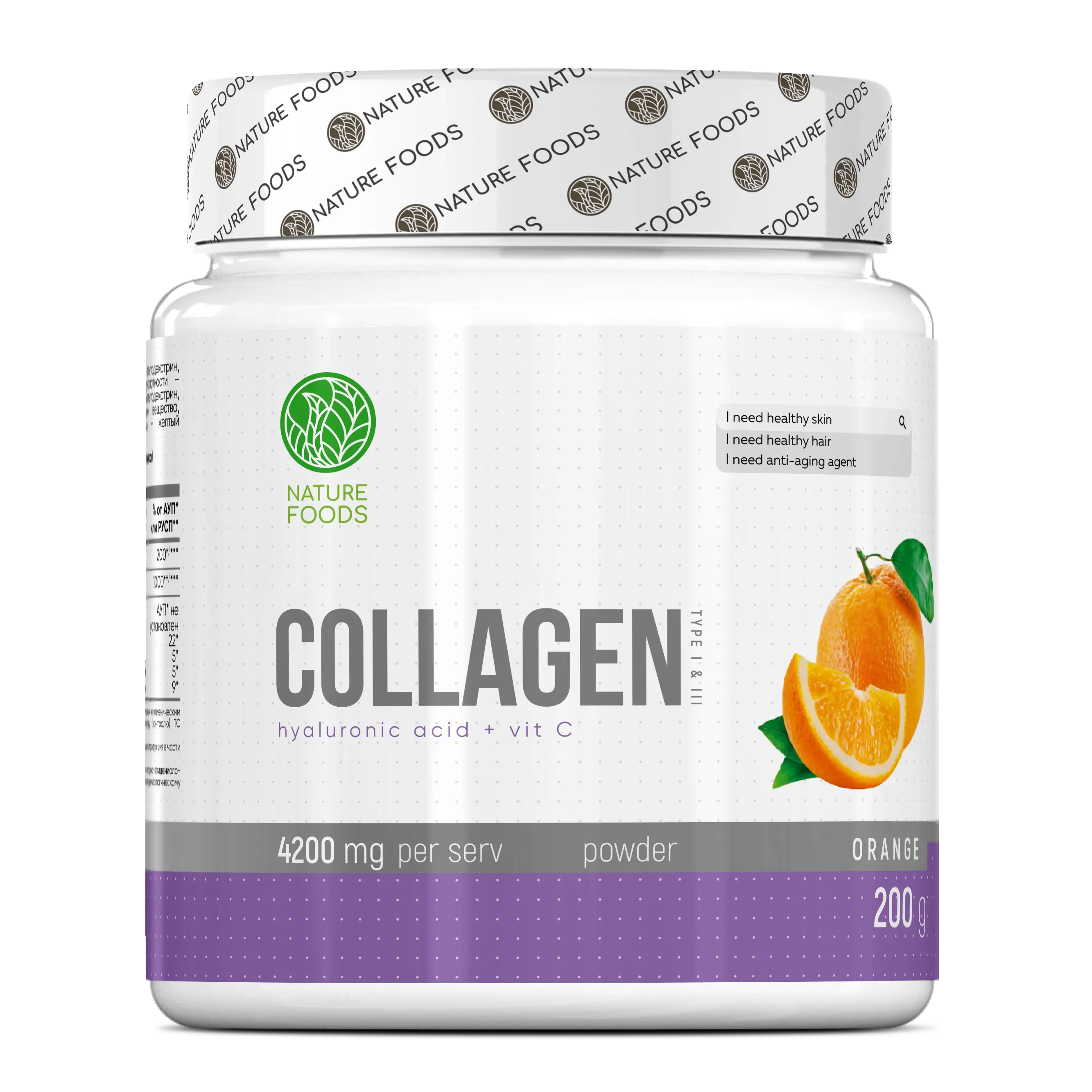 Nature Foods Collagen + Hyaluronic Acid + Vitamin C 200 г