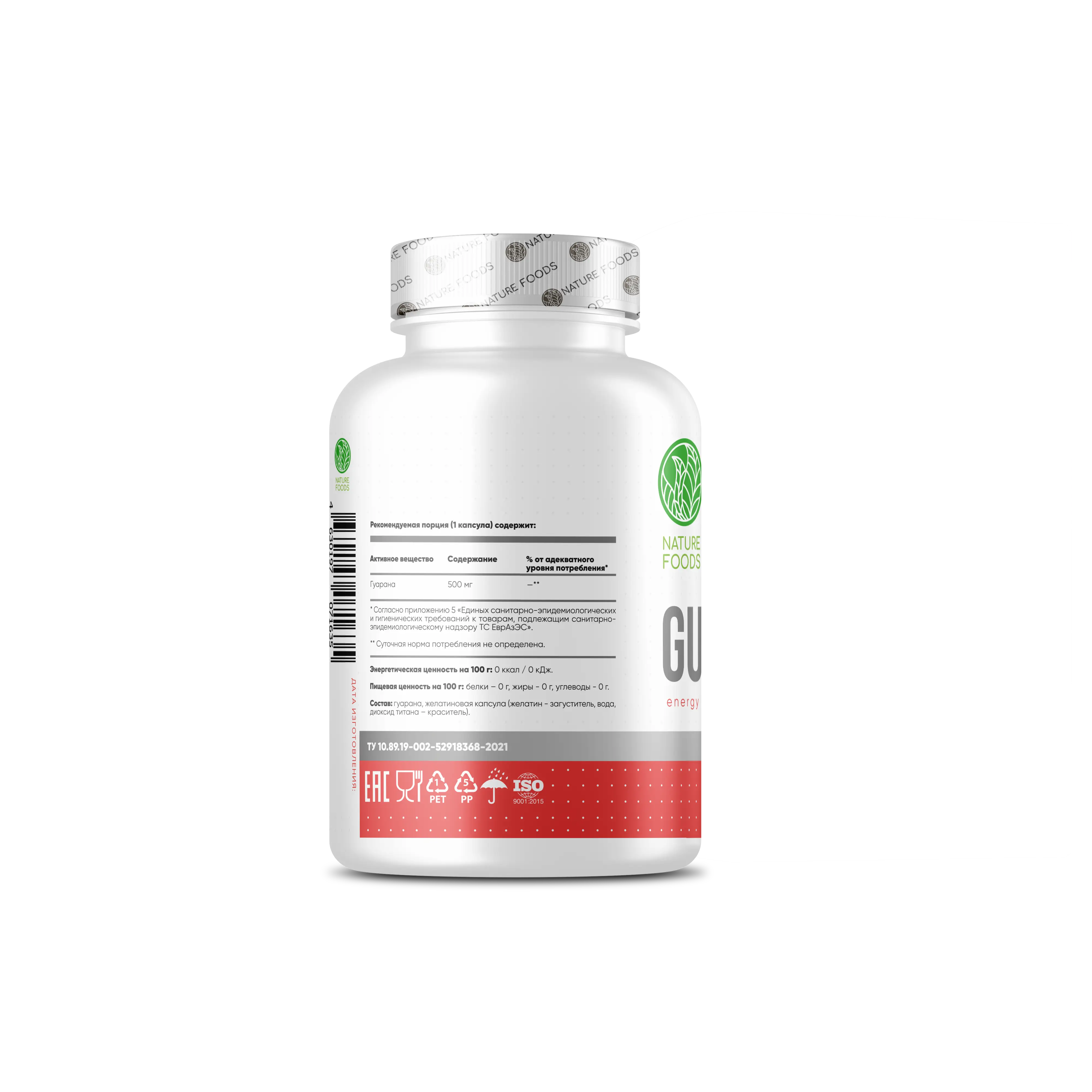 Состав: экстракт гуараны желатиновая капсула(желатин-загуститель, вода, диоксид титана-краситель).