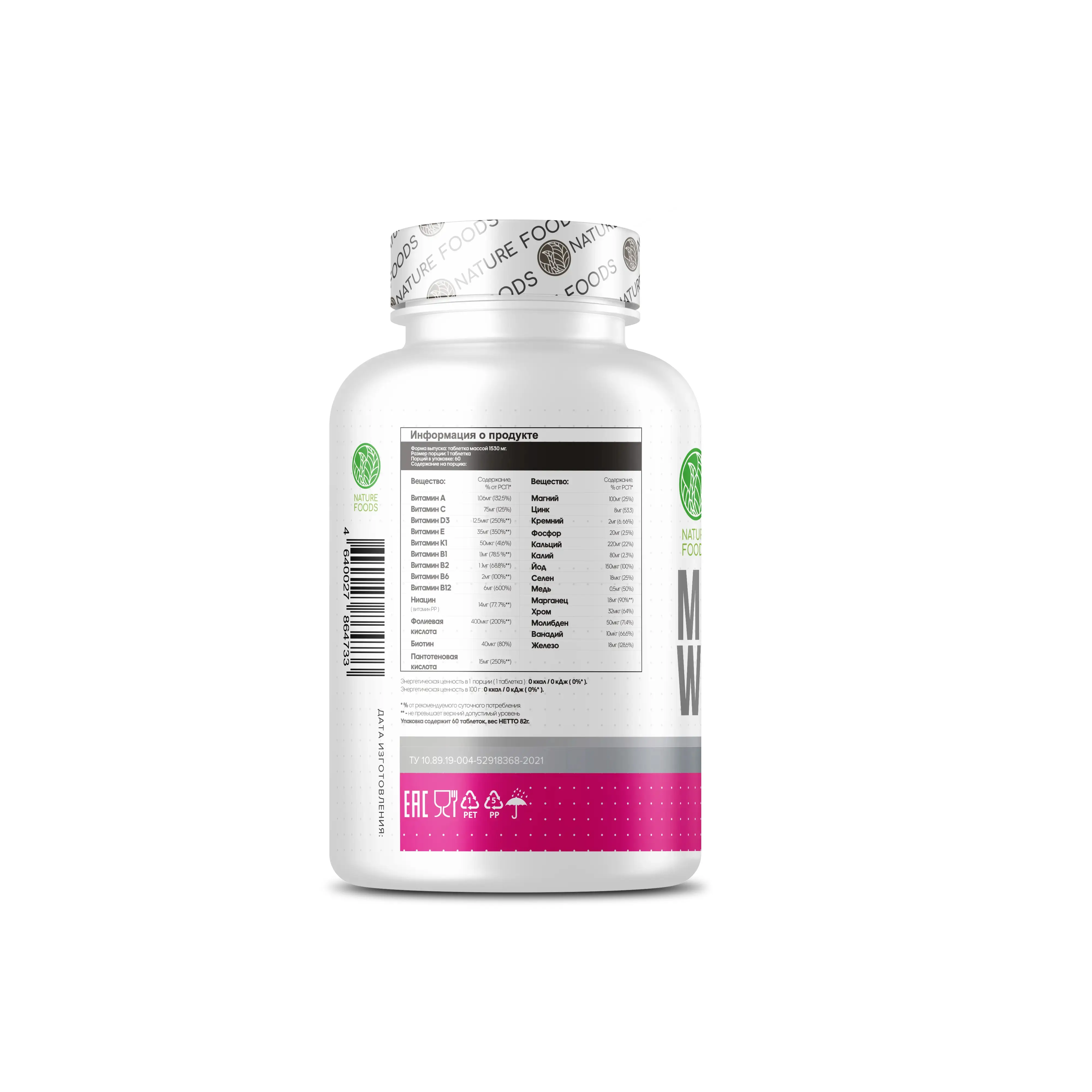 Nature Foods Multi WoMen – это витаминно-минеральный комплекс для улучшения состояния женского здоровья. Имеет невысокие концентрации компонентов, поэтому может быть использован не только спортсменами, но и людьми ведущих малоподвижный образ жизни.